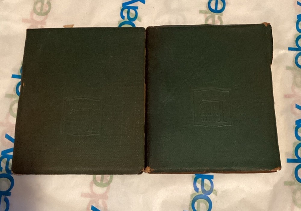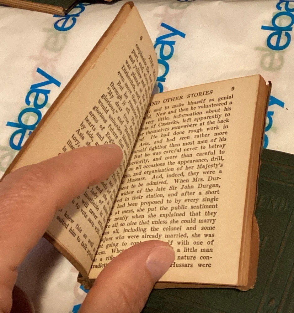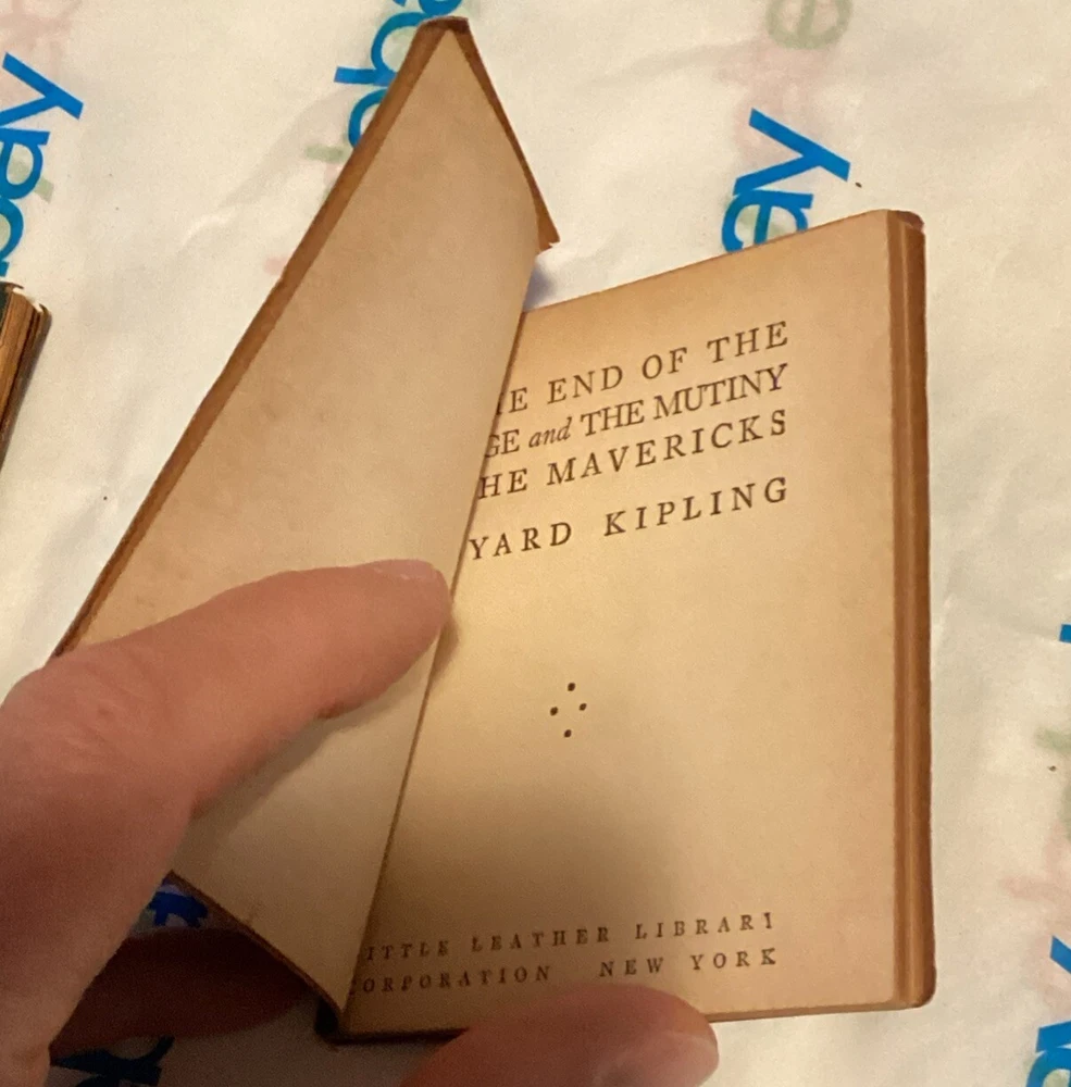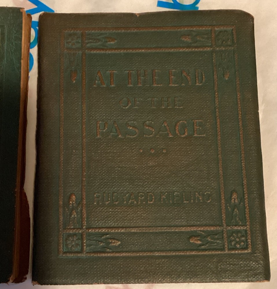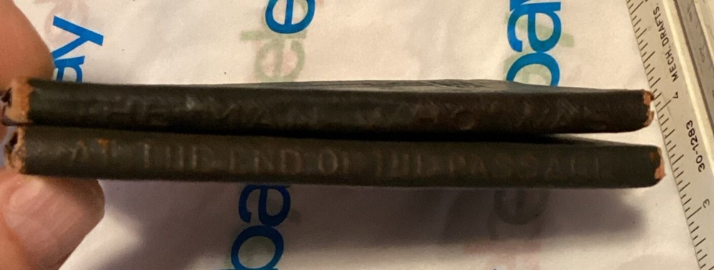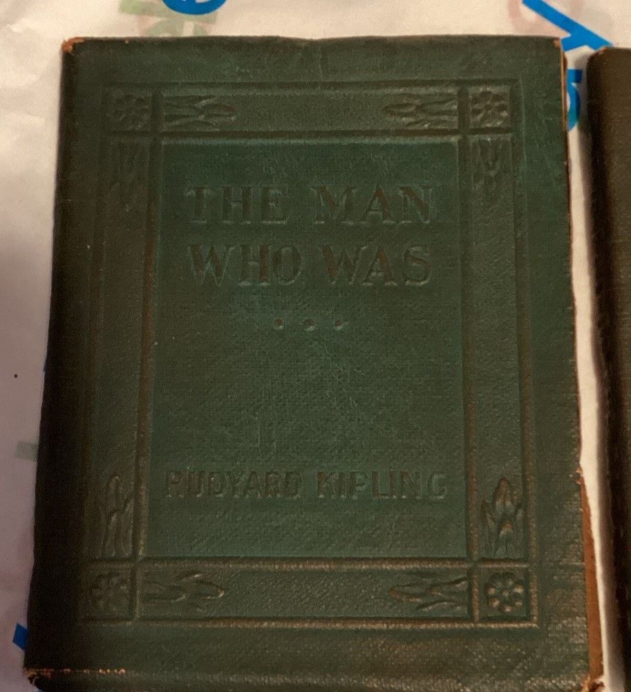 2 little leather library books Author Rudyard Kipling The Man Who Was And Other Stories At The End Of The Passage Both in good condition. First and last pages darkened/browned as shown in photos. Clean and white with some tanning inside. Good condition Approx 3” x 4”
