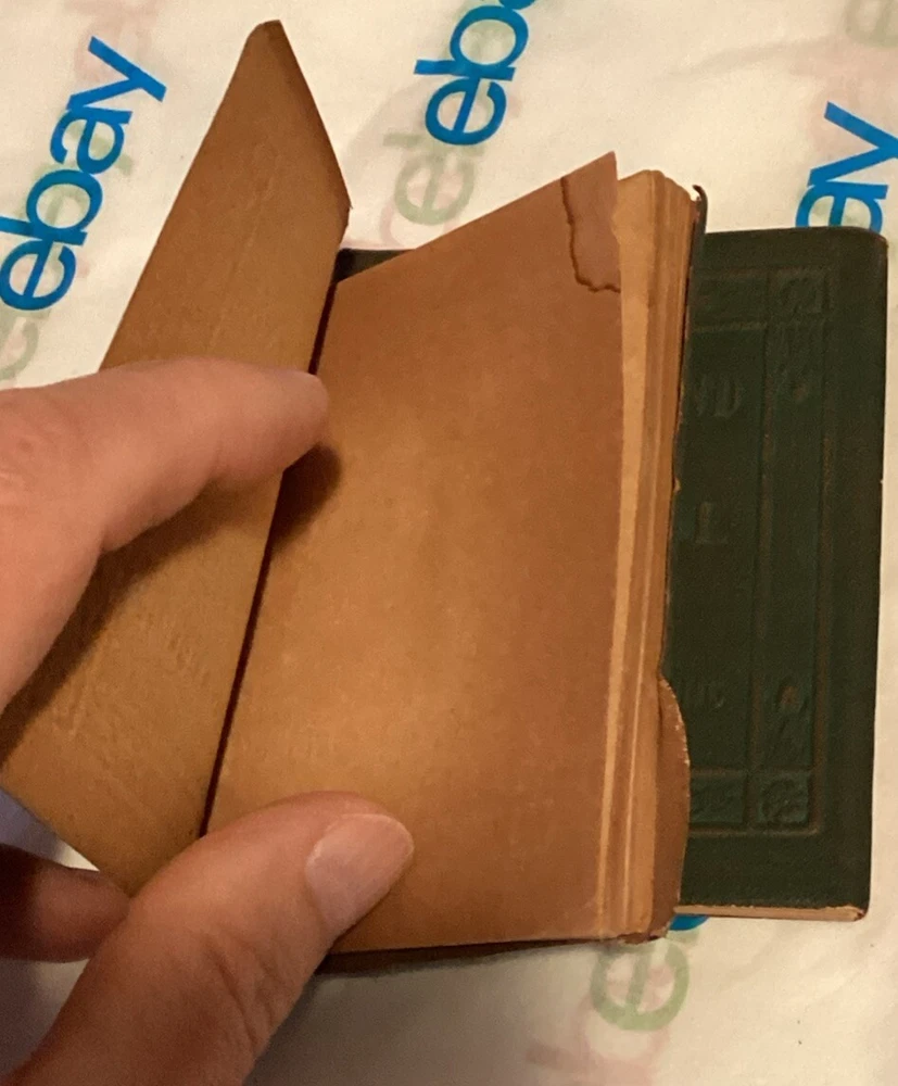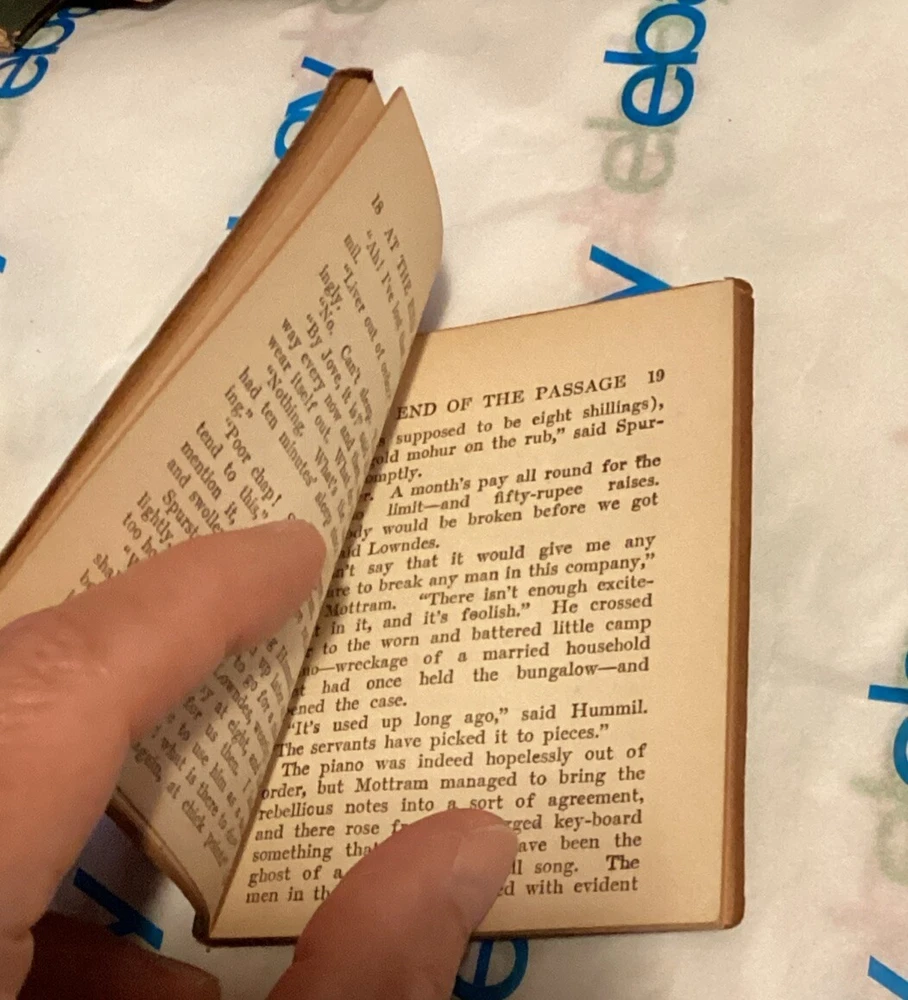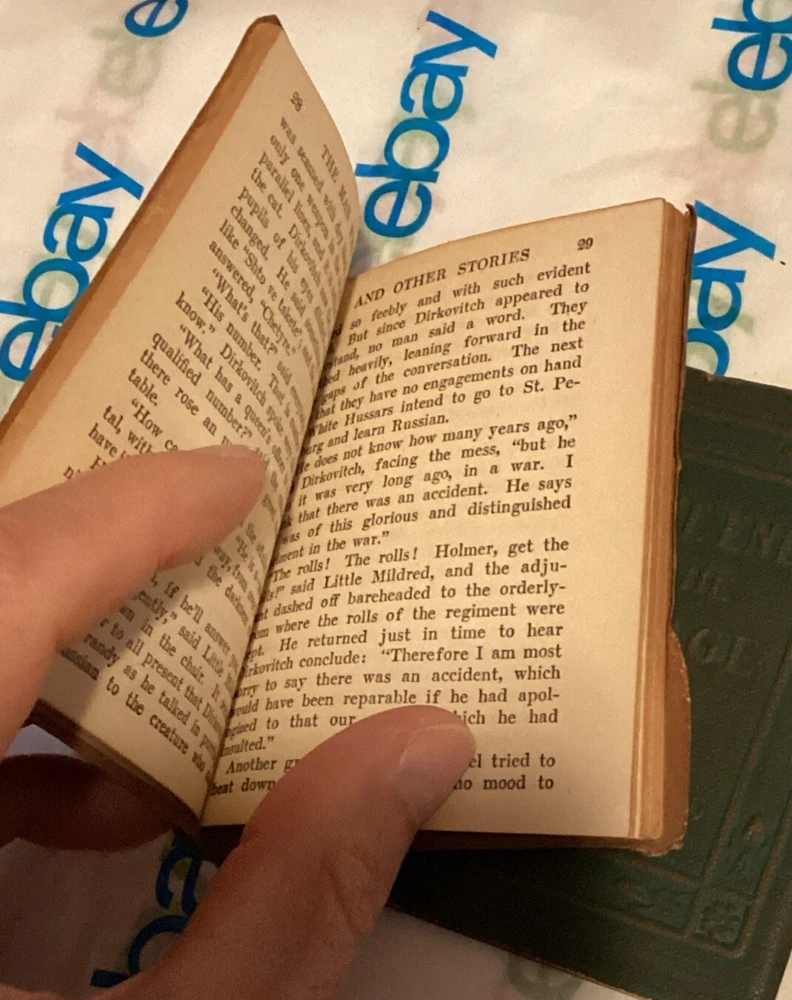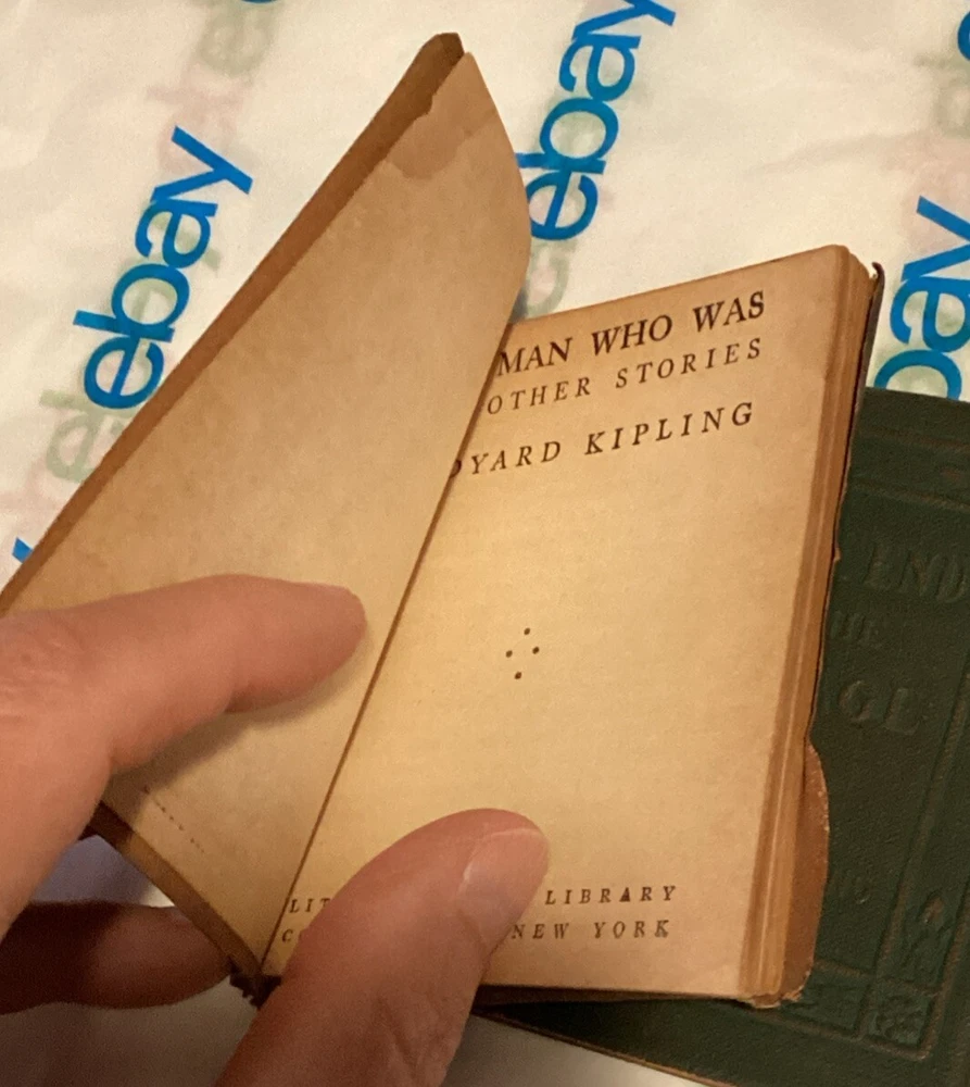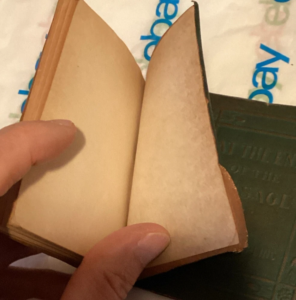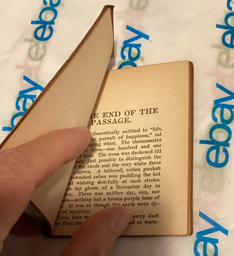 2 little leather library books Author Rudyard Kipling The Man Who Was And Other Stories At The End Of The Passage Both in good condition. First and last pages darkened/browned as shown in photos. Clean and white with some tanning inside. Good condition Approx 3” x 4”