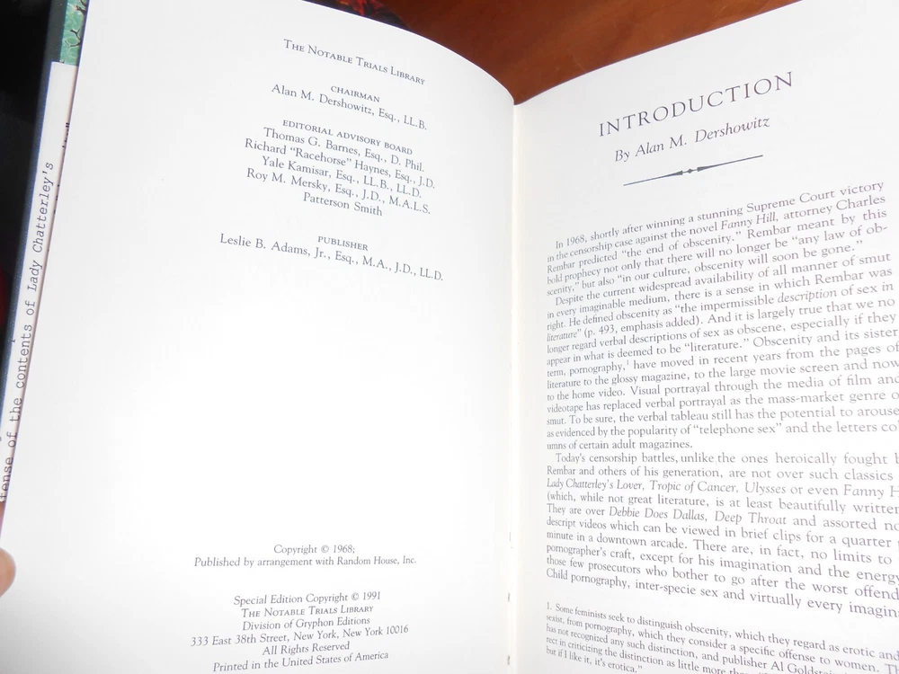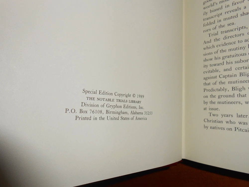 Notable Trial Library from Gryphon Editions. Introduction by Alan Dershewitz. This lot of 2 case trials includes The Court Martial of the "Bounty" Mutineers, Owen Rutter, 1989 The End of Obsenity: Lady Chatterley, Tropic of Cancer and Fanny Hill, Charles Rembar, 1991 1/4 Leather Hardcovers Condition: RATED: USED: Like New condition. See Condition Description for details. Please review all photos. Dimensions: 9.25” (H) x 6.25” (W) x2.5” (Shelf Width). Will be shipped in one box. (Shipping approximately 5 lbs . total weight) International Buyers - Please Note: Import duties, taxes, and charges are not included in the item price or shipping cost. These charges are the buyer's responsibility. Please check with your country's customs office to determine what these additional costs will be prior to bidding or buying. Please visit the Sacramento Book Den eBay store for other great books. Click here for the Sacramento Book Den eBay store All proceeds go to the Sacramento Public Library. Thank you for your consideration of this lot of 2 Notable Trial Library books. Locator: 24171JB