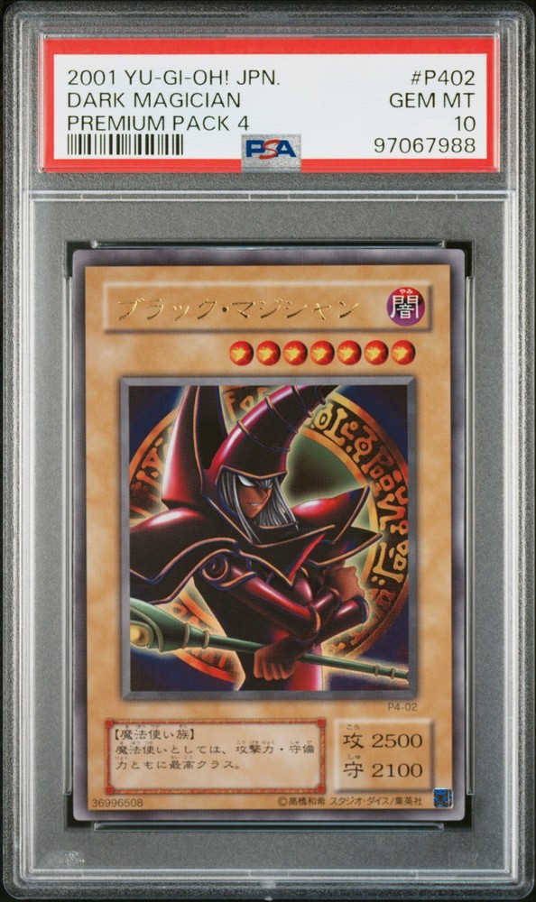 2001 YU-GI-OH! JAPANESE PREMIUM PACK 4 #P402 DARK MAGICIAN PSA 10 2001 YU-GI-OH! JAPANESE PREMIUM PACK 4 #P402 DARK MAGICIAN PSA 10 Purchase Info Thank you for your interest in this item consigned with PSA! By purchasing or making an offer on this item, you acknowledge and agree to the following terms: All sales are final. Returns not accepted. Payment must be made upon purchase of the item. All items are sold "as is" and without warranty of Collectors Universe, Inc. (d/b/a PSA), and ANY AND ALL IMPLIED WARRANTIES ARE DISCLAIMED AND EXCLUDED. Sales tax may apply depending on shipping address. PSA does not guarantee that another third-party grading company's authentication or certification of an item as genuine is correct or accurate. Neither a difference of opinion between third-party grading companies about authenticity, nor a company's subsequent reversal of its earlier authentication or certification of an item, will be a basis for rescinding a sale. Any dispute with another third-party grading company relating to the authenticity of an item must be resolved directly with that other company. Collectors' maximum liability in the event of loss or damage to an item during shipping will be the lesser of (a) the price paid for the item and (b) the change in fair market value of the item. You release Collectors from all other liability including for any claims of punitive damages, emotional distress, consequential damages, lost profits, or lost interest, except as prohibited by law. Shipping Purchased Items will be shipped directly from PSA Vault. You stay hands-free. PSA Vault When you purchase this item, you can save on sales tax and selling fees by keeping it in the PSA Vault, official Vault of eBay. Items already in PSA Vault and will be sent to PSA Vault will have no shipping charge Storage of any items with the PSA Vault will be subject to the PSA Vault Terms of Service. Consignment PSA has competitive rates on the world's largest collectibles marketplace with the option to list from the PSA Vault or immediately after PSA authentication and grading. Sale Price Under $100 $100 - $499 $500 - $999 $1,000 - $2,499 $2,500 - $4,999 $5,000+ Seller Fee 16% 14% 13% 10% 9% 7% Sellers pay a single fee as reflected above; no additional eBay fees are incurred. There is a $5 minimum fee on sold items.
