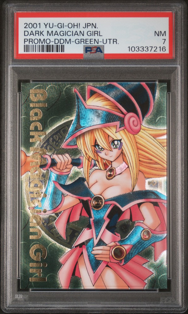 2001 YU-GI-OH! JAPANESE PROMO DUNGEON DICE MONSTERS-GREEN-ULTIMATE RARE DARK MAGICIAN GIRL PSA 7 2001 YU-GI-OH! JAPANESE PROMO DUNGEON DICE MONSTERS-GREEN-ULTIMATE RARE DARK MAGICIAN GIRL PSA 7 Purchase Info Thank you for your interest in this item consigned with PSA! By purchasing or making an offer on this item, you acknowledge and agree to the following terms: All sales are final. Returns not accepted. Payment must be made upon purchase of the item. All items are sold "as is" and without warranty of Collectors Universe, Inc. (d/b/a PSA), and ANY AND ALL IMPLIED WARRANTIES ARE DISCLAIMED AND EXCLUDED. Sales tax may apply depending on shipping address. PSA does not guarantee that another third-party grading company's authentication or certification of an item as genuine is correct or accurate. Neither a difference of opinion between third-party grading companies about authenticity, nor a company's subsequent reversal of its earlier authentication or certification of an item, will be a basis for rescinding a sale. Any dispute with another third-party grading company relating to the authenticity of an item must be resolved directly with that other company. Collectors' maximum liability in the event of loss or damage to an item during shipping will be the lesser of (a) the price paid for the item and (b) the change in fair market value of the item. You release Collectors from all other liability including for any claims of punitive damages, emotional distress, consequential damages, lost profits, or lost interest, except as prohibited by law. Shipping Purchased Items will be shipped directly from PSA Vault. You stay hands-free. PSA Vault When you purchase this item, you can save on sales tax and selling fees by keeping it in the PSA Vault, official Vault of eBay. Items already in PSA Vault and will be sent to PSA Vault will have no shipping charge Storage of any items with the PSA Vault will be subject to the PSA Vault Terms of Service. Consignment PSA has competitive rates on the world's largest collectibles marketplace with the option to list from the PSA Vault or immediately after PSA authentication and grading. Sale Price Under $100 $100 - $499 $500 - $999 $1,000 - $2,499 $2,500 - $4,999 $5,000+ Seller Fee 16% 14% 13% 10% 9% 7% Sellers pay a single fee as reflected above; no additional eBay fees are incurred. There is a $5 minimum fee on sold items.