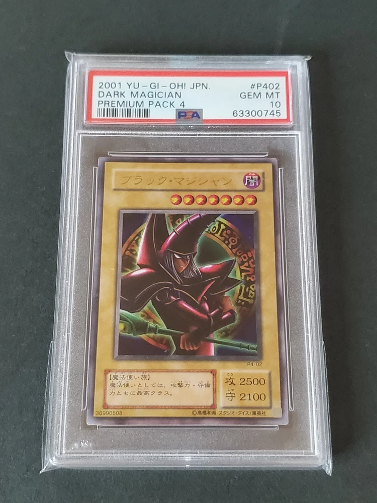 2001 YU-GI-Oh! Japanese Premium Pack 4 P402 Dark Magician PSA 遊戯王 ブラック・マジシャン The PSA graded card is carefully stored in an OPP bag to prevent any damage. ---About Shipping--- Enjoy quick FedEx shipping from Japan! ---Payment--- We accept PayPal only. We usually ship within 5 business days of receiving cleared payment. Our return policy applies only in cases of unopened item packages. Import duties, taxes, and charges are not included in the item price or shipping cost. These charges are the buyer's responsibility. ---International Buyers Please Note--- - Import duties, taxes and charges are not included in the item price or shipping charges. These charges are the buyer's responsibility. - Please check with your country's customs office to determine what these additional costs will be prior to bidding/buying. - These charges are normally collected by the delivering freight (shipping) company or when you pick the item up do not confuse them for additional shipping charges. - We do not mark merchandise values below value or mark items as "gifts" - US and International government regulations prohibit such behavior.
