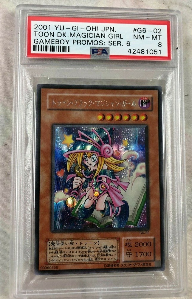 This rare and highly sought-after card features the iconic Toon Dark Magician Girl from the Yu-Gi-Oh! TCG. The card is a Japanese G6-02 Toon Dark Magician Girl GB Promo, manufactured by T C G in 2001. It is an effect type card with a foil finish and a card size of Japanese. The card is made of high-quality paper and has a defense/toughness of 1700 and an attack/power of 2000. It belongs to the category of CCG Individual Cards and Collectible Card Games, and it is perfect for fans and collectors alike. The card is in great shape and has been graded PSA 8 NM-MT, making it a valuable addition to any collection. 2001 Yu-gi-oh Japanese G6-02 Toon Dark Magician Girl GB Promo PSA 8 NM-MT RARE