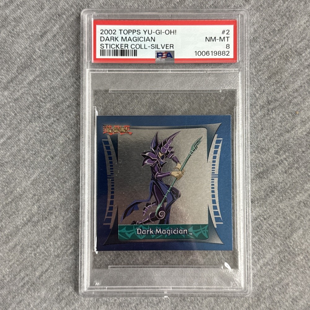 2002 Topps Yu-Gi-Oh! Sticker Collection #2 Dark Magician Silver PSA 8 NM-MT Item Details A picture says a thousand words, please refer to pictures for full condition and specific item details. Please note that you are purchasing the exact contents pictured and only what is pictured. If it is not pictured, then it is not included in this listing. Assume major cosmetic wear; scratches, chips, cuts, cracks, dents, and dings on any part of any item that is not pictured. It is your responsibility as the buyer to obtain any information prior to completing your purchase. If you have any questions or concerns, please ask and we will respond as soon as possible. Best offers will not be considered if sent through an eBay message. Remember we are human, and errors do happen, we are here to provide the best experience and are willing to help where we can. Please understand that all issues that may arise or you are experiencing will be handled according within normal business hours. Any requests made after an item is purchased will be decided upon by our discretion, we reserve the right to cancel any order. Shipping Please note that items are shipped Monday-Friday. All items will be shipped the most cost-efficient way via USPS, FedEx, or UPS. Please note that we only offer free shipping to the 48 continental states. We do not ship directly to Alaska, Hawaii, APO, FPO, or PO boxes. Any purchase with the use of a restricted shipping address will be cancelled. Shipping address cannot be altered after purchase as per eBay policy. All international items will be shipped using the Global Shipping Program Only. Local pick up is not offered for any listing. Please contact us before completing purchase if you have any special requests or concerns, we are willing to complete the necessary accommodations within the best of our abilities. Returns Please note that returns are to be handled directly according to the selected return policy. Any new, sealed, unopened, or items altered in any way are not eligible for return. All returns are subjected to a 20% restocking fee, where applicable. Return shipping cost is the buyers responsibility.