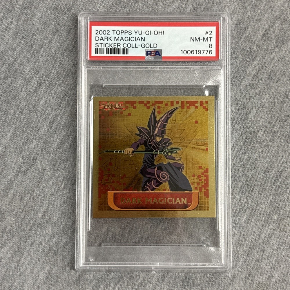 2002 Topps Yu-Gi-Oh! Sticker Collection Dark Magician Gold PSA 8 NM-MT Item Details A picture says a thousand words, please refer to pictures for full condition and specific item details. Please note that you are purchasing the exact contents pictured and only what is pictured. If it is not pictured, then it is not included in this listing. Assume major cosmetic wear; scratches, chips, cuts, cracks, dents, and dings on any part of any item that is not pictured. It is your responsibility as the buyer to obtain any information prior to completing your purchase. If you have any questions or concerns, please ask and we will respond as soon as possible. Best offers will not be considered if sent through an eBay message. Remember we are human, and errors do happen, we are here to provide the best experience and are willing to help where we can. Please understand that all issues that may arise or you are experiencing will be handled according within normal business hours. Any requests made after an item is purchased will be decided upon by our discretion, we reserve the right to cancel any order. Shipping Please note that items are shipped Monday-Friday. All items will be shipped the most cost-efficient way via USPS, FedEx, or UPS. Please note that we only offer free shipping to the 48 continental states. We do not ship directly to Alaska, Hawaii, APO, FPO, or PO boxes. Any purchase with the use of a restricted shipping address will be cancelled. Shipping address cannot be altered after purchase as per eBay policy. All international items will be shipped using the Global Shipping Program Only. Local pick up is not offered for any listing. Please contact us before completing purchase if you have any special requests or concerns, we are willing to complete the necessary accommodations within the best of our abilities. Returns Please note that returns are to be handled directly according to the selected return policy. Any new, sealed, unopened, or items altered in any way are not eligible for return. All returns are subjected to a 20% restocking fee, where applicable. Return shipping cost is the buyers responsibility.