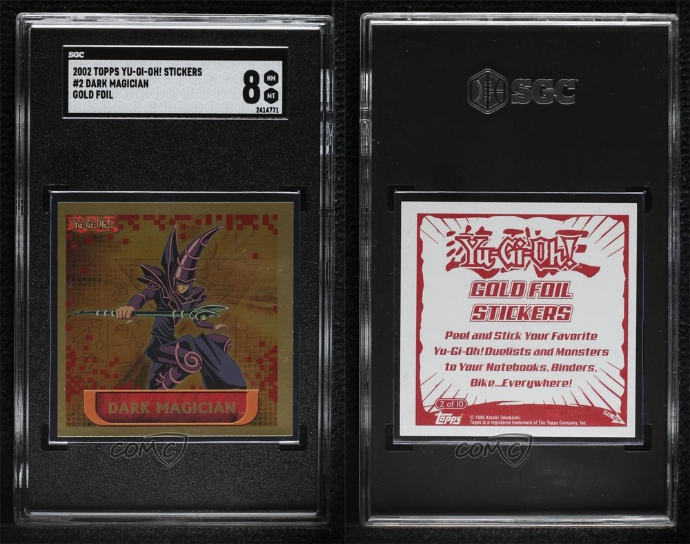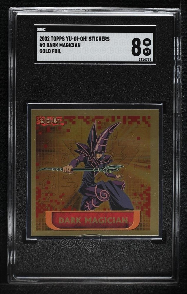 2002 Topps Yu-Gi-Oh! Sticker Collection - Gold Foil #2 Dark Magician Graded SGC 8 NM/Mt COMC Item: 136635824 - YuGiOh Card - Featuring Dark Magician Search for more: 2002 Topps Yu-Gi-Oh! Sticker Collection Search for more: 2002 Topps Yu-Gi-Oh! Sticker Collection - Gold Foil View all of our Listings Auctions Buy It Now About Us Located in the beautiful Pacific Northwest, COMC (Check Out My Cards) is the world's largest consignment service for trading card singles. More than 10,000 people have used our consignment service to list over 50 million trading cards. Find out how we can help you consign your items on eBay by contacting us through eBay messaging. COMC -- "The Safe & Easy Way to Buy & Sell" Raw Condition for Modern Cards Unless otherwise noted, raw modern cards are listed in Near Mint-Mint condition or better. A NM-MT card appears to be Mint at first glance, but upon closer inspection, may exhibit some of the following: minor print defects (e.g. roller marks, print line, dimple), minor scratches, slight edge wear, and slight corner wear. Centering is clearly visible in the images provided and does not factor into our condition assessment. Raw Condition for Vintage Cards Unless otherwise noted, raw vintage cards are listed in Excellent condition or better. An EX card may exhibit some of the following: minor rounding of corners, surface wear, print defects, light scratches, and slight edge wear/chipping. Centering is clearly visible in the images provided and does not factor into our condition assessment. Domestic Shipping Combined shipping for multiple items is available. To receive combined shipping, please ensure all desired items are in your eBay shopping cart before proceeding to checkout. eBay limits orders to 40 items per order. We automatically combine multiple orders placed on the same day. If you place multiple orders on the same day, please contact us to request a refund of applicable shipping costs. Signature confirmation may be required on invoices over $400. All cards are protected and shipped securely. International Shipping COMC offers eBay's International Shipping (EIS) for international orders under $2,500* (see country exceptions below). All duties and import fees are paid at checkout; in the rare event that there are additional import fees upon delivery, these are borne by the buyer. EIS packages route through a shipping hub in Erlanger, KY before shipping to their final destination. Please note that EIS does not allow for combined shipments. The shipping rates are determined by eBay and cannot be adjusted. *Maximum sale price exceptions: Colombia, Kuwait ($2,000); Taiwan ($1,539); Chile, Costa Rica, Guatemala, Honduras, Trinidad and Tobago ($1,000); Antigua and Barbuda, Aruba, Belize, Dominica, Grenada, Philippines, Saint Kitts and Nevis, Saint Lucia, Montserrat, Turks and Caicos Islands ($500); Dominican Republic, El Salvador ($200). Please request a shipping quote through eBay messaging for orders that exceed the maximum sale price supported by eBay's International Shipping. You will be responsible for all duties and import fees for international orders shipped outside the EIS. All cards are protected and shipped securely. Payment COMC does not accept offers on our cards through our eBay storefront. COMC utilizes eBay’s managed payments system. If you are experiencing difficulties making a payment, please contact eBay for assistance. Return Policy Returns are only accepted on the rare occasion the item is not as described. If you are making a return, please initiate the return process through eBay so a mailing label can be provided for you. Prior to listing, our expert team carefully assessed this item to represent it accurately. Please review the description and high-definition images prior to purchasing to ensure this item meets your satisfaction. We welcome you to contact us if you have further questions about this item. Trust and Integrity COMC carefully assesses each item consigned to us to prevent fraudulent items from entering the marketplace. If you believe an item offered on COMC may be fraudulent, please contact us with details so we can investigate the issue. Items we determine are outside our supported items policy may be removed. Last Modified: 7/10/2025 3:06:18 PM PDT