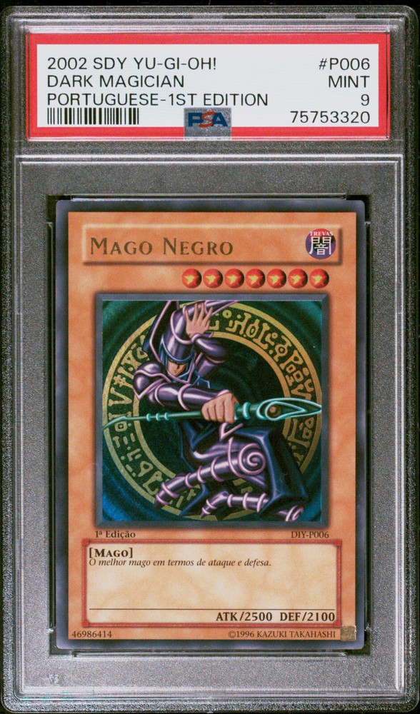 Description Condition: PSA 9 MINT Availability: In Stock You are Purchasing 2002 YUGIOH 1ST ED DIY-P006 PORTUGUESE DARK MAGICIAN ULTRA PSA 9 MINT #75753320 Professionally graded by Professional Sports Authenticator (PSA) *PSA CERTIFICATE NUMBER MAY VARY FROM PHOTO(S) >>MORE GRADED YUGIOH CARDS<< IG: CARD_RUSH_INC Payment Options Payment is expected within 7 days of your purchase date. We accept all forms of payments through Paypal. Shipping and Handling We ship to all U.S. states, U.S. territories, APO/FPO locations and any international countries listed under our "ship to" heading. Shipping and Handling is calculated based on the combined shipping weight of your item(s). Please use the shipping calculator to estimate your shipping and handling charges. In order to qualify for combined shipping terms, all items must be paid for in one payment; please do not pay until you are done bidding/shopping. Please contact us if you have any questions regarding our shipping and handling terms. Shipping and Delivery Packages are shipped out every Monday, Wednesday, and Friday. Domestic Packages take approximately 2-7 days to arrive. International packages may take a little longer to arrive, typically 1-4 weeks. Please allow ample transit times before inquiring about your package, thank you. Sales Tax Sales tax will be automatically collected by Ebay. Customer Service We will make every effort to get your purchase is mailed in a timely manner. Please contact us if you have any questions or concerns; we would love to hear any suggestions you have on how we can improve your eBay experience. Thank you for visiting us today.