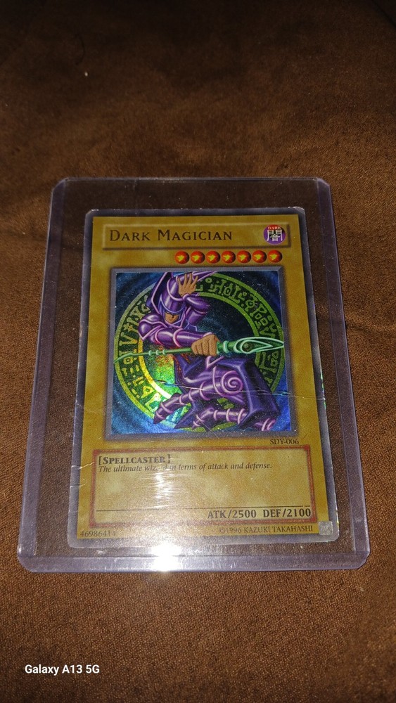 This 2002 Yu-Gi-Oh! TCG card features the iconic Dark Magician character in a stunning Holo Ultra Rare finish. With a card size of Standard, this card is made from high-quality card stock and illustrated by Kazuki Takahashi. It belongs to the Yu-Gi-Oh! franchise and is part of the Yugi set, with a card number of SDY-006. This card is perfect for collectors and fans of the Yu-Gi-Oh! TCG game. Its attributes include Darkness, Spellcaster, and Monster, with a defense/toughness of 2100 and an attack/power of 2500. It is a vintage card manufactured by Konami in English language and featuring no autograph. This card is a must-have for any serious collector and is sure to be a valuable addition to your collection.