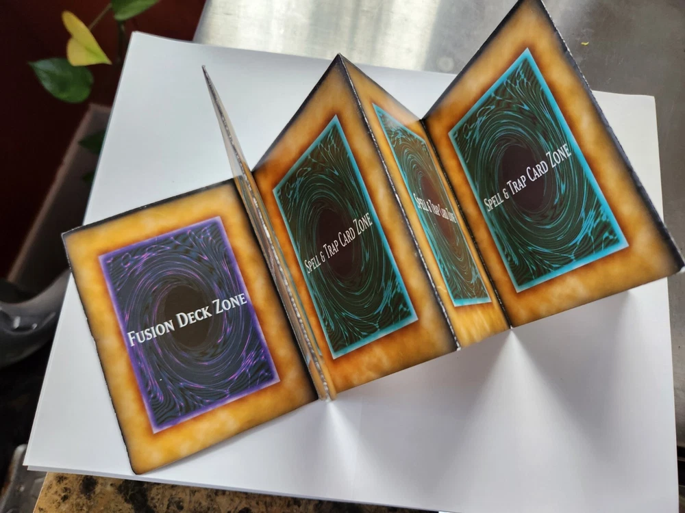 Everything is in played condition. Most of the cards are in very good condition with no creases. Some have edge wear. No stains or smells. Deck zone and one of the rule books has more wear than most everything else.
