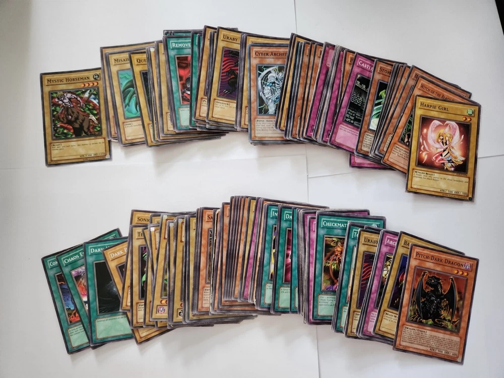 Everything is in played condition. Most of the cards are in very good condition with no creases. Some have edge wear. No stains or smells. Deck zone and one of the rule books has more wear than most e...