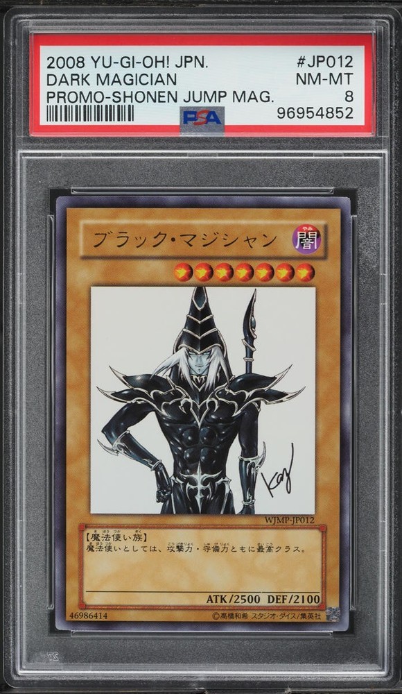 Step into the realm of magic with the 2008 Yu-Gi-Oh! Japanese Promo Shonen Jump Dark Magician card, a must-have for collectors and duelists alike. Bearing the code #WJMP-JP012, this rare piece showcases the iconic Dark Magician in stunning detail, a testament to the card's power and mystique. Graded PSA 8 NM-MT, this card falls into the coveted Near Mint to Mint category, preserving its pristine quality. Ideal for enhancing your collection or for using in strategic gameplay, it's a versatile addition to any Yu-Gi-Oh! TCG arsenal.
