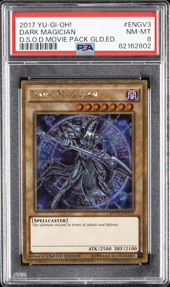 2017 YU-GI-OH! THE DARK SIDE OF DIMENSIONS MOVIE PACK GOLD EDITION #ENGV3 DARK MAGICIAN PSA 8 2017 YU-GI-OH! THE DARK SIDE OF DIMENSIONS MOVIE PACK GOLD EDITION #ENGV3 DARK MAGICIAN PSA 8 Purchase Info Thank you for your interest in this item consigned with PSA! By purchasing or making an offer on this item, you acknowledge and agree to the following terms: All sales are final. Returns not accepted. Payment must be made upon purchase of the item. All items are sold "as is" and without warranty of Collectors Universe, Inc. (d/b/a PSA), and ANY AND ALL IMPLIED WARRANTIES ARE DISCLAIMED AND EXCLUDED. Sales tax may apply depending on shipping address. PSA does not guarantee that another third-party grading company's authentication or certification of an item as genuine is correct or accurate. Neither a difference of opinion between third-party grading companies about authenticity, nor a company's subsequent reversal of its earlier authentication or certification of an item, will be a basis for rescinding a sale. Any dispute with another third-party grading company relating to the authenticity of an item must be resolved directly with that other company. Collectors' maximum liability in the event of loss or damage to an item during shipping will be the lesser of (a) the price paid for the item and (b) the change in fair market value of the item. You release Collectors from all other liability including for any claims of punitive damages, emotional distress, consequential damages, lost profits, or lost interest, except as prohibited by law. Shipping Purchased Items will be shipped directly from PSA Vault. You stay hands-free. PSA Vault When you purchase this item, you can save on sales tax and selling fees by keeping it in the PSA Vault, official Vault of eBay. Items already in PSA Vault and will be sent to PSA Vault will have no shipping charge Storage of any items with the PSA Vault will be subject to the PSA Vault Terms of Service. Consignment PSA has competitive rates on the world's largest collectibles marketplace with the option to list from the PSA Vault or immediately after PSA authentication and grading. Sale Price Under $100 $100 - $499 $500 - $999 $1,000 - $2,499 $2,500 - $4,999 $5,000+ Seller Fee 16% 14% 13% 10% 9% 7% Sellers pay a single fee as reflected above; no additional eBay fees are incurred. There is a $5 minimum fee on sold items.