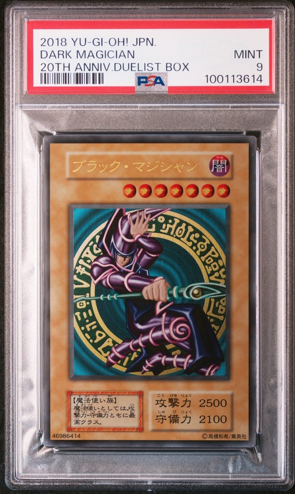 2018 YU-GI-OH! JAPANESE 20TH-20TH ANNIVERSARY DUELIST BOX DARK MAGICIAN PSA 9 2018 YU-GI-OH! JAPANESE 20TH-20TH ANNIVERSARY DUELIST BOX DARK MAGICIAN PSA 9 Purchase Info Thank you for your interest in this item consigned with PSA! By purchasing or making an offer on this item, you acknowledge and agree to the following terms: All sales are final. Returns not accepted. Payment must be made upon purchase of the item. All items are sold "as is" and without warranty of Collectors Universe, Inc. (d/b/a PSA), and ANY AND ALL IMPLIED WARRANTIES ARE DISCLAIMED AND EXCLUDED. Sales tax may apply depending on shipping address. PSA does not guarantee that another third-party grading company's authentication or certification of an item as genuine is correct or accurate. Neither a difference of opinion between third-party grading companies about authenticity, nor a company's subsequent reversal of its earlier authentication or certification of an item, will be a basis for rescinding a sale. Any dispute with another third-party grading company relating to the authenticity of an item must be resolved directly with that other company. Collectors' maximum liability in the event of loss or damage to an item during shipping will be the lesser of (a) the price paid for the item and (b) the change in fair market value of the item. You release Collectors from all other liability including for any claims of punitive damages, emotional distress, consequential damages, lost profits, or lost interest, except as prohibited by law. Shipping Purchased Items will be shipped directly from PSA Vault. You stay hands-free. PSA Vault When you purchase this item, you can save on sales tax and selling fees by keeping it in the PSA Vault, official Vault of eBay. Items already in PSA Vault and will be sent to PSA Vault will have no shipping charge Storage of any items with the PSA Vault will be subject to the PSA Vault Terms of Service. Consignment PSA has competitive rates on the world's largest collectibles marketplace with the option to list from the PSA Vault or immediately after PSA authentication and grading. Sale Price Under $100 $100 - $499 $500 - $999 $1,000 - $2,499 $2,500 - $4,999 $5,000+ Seller Fee 16% 14% 13% 10% 9% 7% Sellers pay a single fee as reflected above; no additional eBay fees are incurred. There is a $5 minimum fee on sold items.