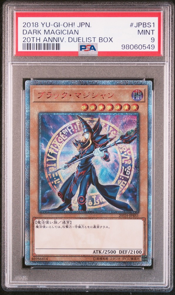 2018 YU-GI-OH! JAPANESE 20TH-20TH ANNIVERSARY DUELIST BOX #JPBS1 DARK MAGICIAN PSA 9 2018 YU-GI-OH! JAPANESE 20TH-20TH ANNIVERSARY DUELIST BOX #JPBS1 DARK MAGICIAN PSA 9 Purchase Info Thank you for your interest in this item consigned with PSA! By purchasing or making an offer on this item, you acknowledge and agree to the following terms: All sales are final. Returns not accepted. Payment must be made upon purchase of the item. All items are sold "as is" and without warranty of Collectors Universe, Inc. (d/b/a PSA), and ANY AND ALL IMPLIED WARRANTIES ARE DISCLAIMED AND EXCLUDED. Sales tax may apply depending on shipping address. PSA does not guarantee that another third-party grading company's authentication or certification of an item as genuine is correct or accurate. Neither a difference of opinion between third-party grading companies about authenticity, nor a company's subsequent reversal of its earlier authentication or certification of an item, will be a basis for rescinding a sale. Any dispute with another third-party grading company relating to the authenticity of an item must be resolved directly with that other company. Collectors' maximum liability in the event of loss or damage to an item during shipping will be the lesser of (a) the price paid for the item and (b) the change in fair market value of the item. You release Collectors from all other liability including for any claims of punitive damages, emotional distress, consequential damages, lost profits, or lost interest, except as prohibited by law. Shipping Purchased Items will be shipped directly from PSA Vault. You stay hands-free. PSA Vault When you purchase this item, you can save on sales tax and selling fees by keeping it in the PSA Vault, official Vault of eBay. Items already in PSA Vault and will be sent to PSA Vault will have no shipping charge Storage of any items with the PSA Vault will be subject to the PSA Vault Terms of Service. Consignment PSA has competitive rates on the world's largest collectibles marketplace with the option to list from the PSA Vault or immediately after PSA authentication and grading. Sale Price Under $100 $100 - $499 $500 - $999 $1,000 - $2,499 $2,500 - $4,999 $5,000+ Seller Fee 16% 14% 13% 10% 9% 7% Sellers pay a single fee as reflected above; no additional eBay fees are incurred. There is a $5 minimum fee on sold items.