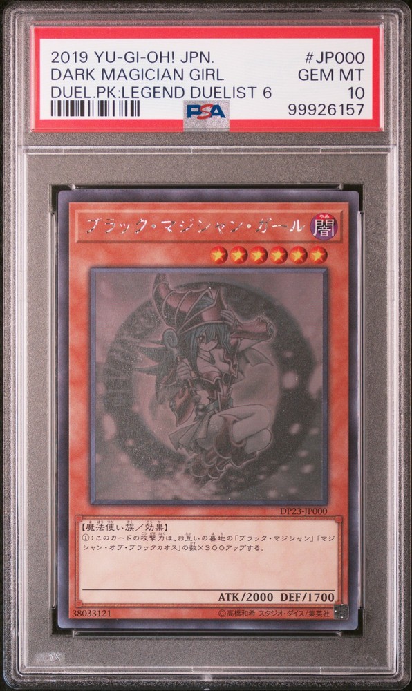 2019 YU-GI-OH! JAPANESE DP23-DUELIST PACK: LEGEND DUELIST 6 #JP000 DARK MAGICIAN GIRL PSA 10 2019 YU-GI-OH! JAPANESE DP23-DUELIST PACK: LEGEND DUELIST 6 #JP000 DARK MAGICIAN GIRL PSA 10 Purchase Info Thank you for your interest in this item consigned with PSA! By purchasing or making an offer on this item, you acknowledge and agree to the following terms: All sales are final. Returns not accepted. Payment must be made upon purchase of the item. All items are sold "as is" and without warranty of Collectors Universe, Inc. (d/b/a PSA), and ANY AND ALL IMPLIED WARRANTIES ARE DISCLAIMED AND EXCLUDED. Sales tax may apply depending on shipping address. PSA does not guarantee that another third-party grading company's authentication or certification of an item as genuine is correct or accurate. Neither a difference of opinion between third-party grading companies about authenticity, nor a company's subsequent reversal of its earlier authentication or certification of an item, will be a basis for rescinding a sale. Any dispute with another third-party grading company relating to the authenticity of an item must be resolved directly with that other company. Collectors' maximum liability in the event of loss or damage to an item during shipping will be the lesser of (a) the price paid for the item and (b) the change in fair market value of the item. You release Collectors from all other liability including for any claims of punitive damages, emotional distress, consequential damages, lost profits, or lost interest, except as prohibited by law. Shipping Purchased Items will be shipped directly from PSA Vault. You stay hands-free. PSA Vault When you purchase this item, you can save on sales tax and selling fees by keeping it in the PSA Vault, official Vault of eBay. Items already in PSA Vault and will be sent to PSA Vault will have no shipping charge Storage of any items with the PSA Vault will be subject to the PSA Vault Terms of Service. Consignment PSA has competitive rates on the world's largest collectibles marketplace with the option to list from the PSA Vault or immediately after PSA authentication and grading. Sale Price Under $100 $100 - $499 $500 - $999 $1,000 - $2,499 $2,500 - $4,999 $5,000+ Seller Fee 16% 14% 13% 10% 9% 7% Sellers pay a single fee as reflected above; no additional eBay fees are incurred. There is a $5 minimum fee on sold items.