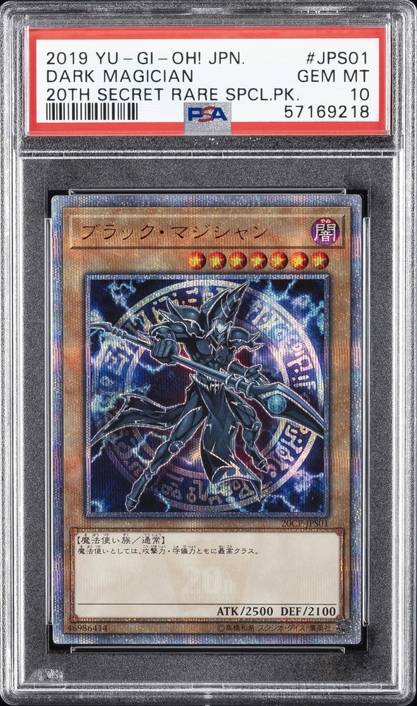 2019 YU-GI-OH! JAPANESE 20TH SECRET RARE SPECIAL PACK #JPS01 DARK MAGICIAN PSA 10 2019 YU-GI-OH! JAPANESE 20TH SECRET RARE SPECIAL PACK #JPS01 DARK MAGICIAN PSA 10 Purchase Info Thank you for your interest in this item consigned with PSA! By purchasing or making an offer on this item, you acknowledge and agree to the following terms: All sales are final. Returns not accepted. Payment must be made upon purchase of the item. All items are sold "as is" and without warranty of Collectors Universe, Inc. (d/b/a PSA), and ANY AND ALL IMPLIED WARRANTIES ARE DISCLAIMED AND EXCLUDED. Sales tax may apply depending on shipping address. PSA does not guarantee that another third-party grading company's authentication or certification of an item as genuine is correct or accurate. Neither a difference of opinion between third-party grading companies about authenticity, nor a company's subsequent reversal of its earlier authentication or certification of an item, will be a basis for rescinding a sale. Any dispute with another third-party grading company relating to the authenticity of an item must be resolved directly with that other company. Collectors' maximum liability in the event of loss or damage to an item during shipping will be the lesser of (a) the price paid for the item and (b) the change in fair market value of the item. You release Collectors from all other liability including for any claims of punitive damages, emotional distress, consequential damages, lost profits, or lost interest, except as prohibited by law. Shipping Purchased Items will be shipped directly from PSA Vault. You stay hands-free. PSA Vault When you purchase this item, you can save on sales tax and selling fees by keeping it in the PSA Vault, official Vault of eBay. Items already in PSA Vault and will be sent to PSA Vault will have no shipping charge Storage of any items with the PSA Vault will be subject to the PSA Vault Terms of Service. Consignment PSA has competitive rates on the world's largest collectibles marketplace with the option to list from the PSA Vault or immediately after PSA authentication and grading. Sale Price Under $100 $100 - $499 $500 - $999 $1,000 - $2,499 $2,500 - $4,999 $5,000+ Seller Fee 16% 14% 13% 10% 9% 7% Sellers pay a single fee as reflected above; no additional eBay fees are incurred. There is a $5 minimum fee on sold items.