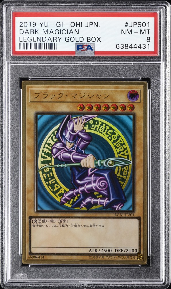 2019 YU-GI-OH! JAPANESE LEGENDARY GOLD BOX #JPS01 DARK MAGICIAN PSA 8 2019 YU-GI-OH! JAPANESE LEGENDARY GOLD BOX #JPS01 DARK MAGICIAN PSA 8 Purchase Info Thank you for your interest in this item consigned with PSA! By purchasing or making an offer on this item, you acknowledge and agree to the following terms: All sales are final. Returns not accepted. Payment must be made upon purchase of the item. All items are sold "as is" and without warranty of Collectors Universe, Inc. (d/b/a PSA), and ANY AND ALL IMPLIED WARRANTIES ARE DISCLAIMED AND EXCLUDED. Sales tax may apply depending on shipping address. PSA does not guarantee that another third-party grading company's authentication or certification of an item as genuine is correct or accurate. Neither a difference of opinion between third-party grading companies about authenticity, nor a company's subsequent reversal of its earlier authentication or certification of an item, will be a basis for rescinding a sale. Any dispute with another third-party grading company relating to the authenticity of an item must be resolved directly with that other company. Collectors' maximum liability in the event of loss or damage to an item during shipping will be the lesser of (a) the price paid for the item and (b) the change in fair market value of the item. You release Collectors from all other liability including for any claims of punitive damages, emotional distress, consequential damages, lost profits, or lost interest, except as prohibited by law. Shipping Purchased Items will be shipped directly from PSA Vault. You stay hands-free. PSA Vault When you purchase this item, you can save on sales tax and selling fees by keeping it in the PSA Vault, official Vault of eBay. Items already in PSA Vault and will be sent to PSA Vault will have no shipping charge Storage of any items with the PSA Vault will be subject to the PSA Vault Terms of Service. Consignment PSA has competitive rates on the world's largest collectibles marketplace with the option to list from the PSA Vault or immediately after PSA authentication and grading. Sale Price Under $100 $100 - $499 $500 - $999 $1,000 - $2,499 $2,500 - $4,999 $5,000+ Seller Fee 16% 14% 13% 10% 9% 7% Sellers pay a single fee as reflected above; no additional eBay fees are incurred. There is a $5 minimum fee on sold items.
