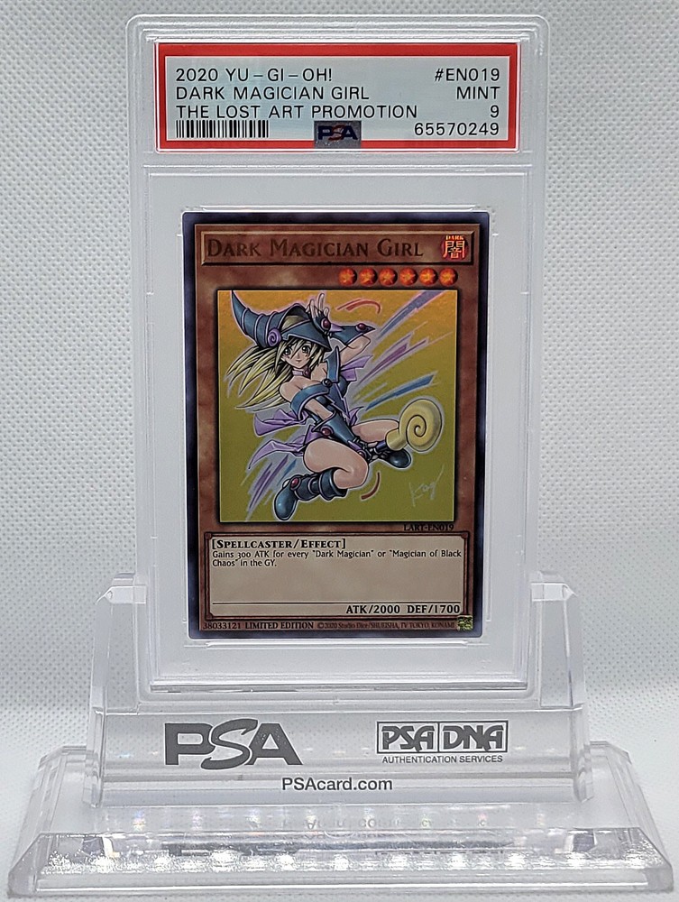 Description Condition: PSA 9 MINT Availability: In Stock You are Purchasing 2020 YUGIOH LART-EN019 DARK MAGICIAN GIRL ULTRA RARE HOLO PSA 9 MINT #65570249 Professionally graded by Professional Sports Authenticator (PSA) *PLEASE REVIEW PHOTO(S) BEFORE BIDDING/BUYING. >>MORE GRADED YUGIOH CARDS<< IG: CARD_RUSH_INC Payment Options Payment is expected within 7 days of your purchase date. We accept all forms of payments through Paypal. Shipping and Handling We ship to all U.S. states, U.S. territories, APO/FPO locations and any international countries listed under our "ship to" heading. Shipping and Handling is calculated based on the combined shipping weight of your item(s). Please use the shipping calculator to estimate your shipping and handling charges. In order to qualify for combined shipping terms, all items must be paid for in one payment; please do not pay until you are done bidding/shopping. Please contact us if you have any questions regarding our shipping and handling terms. Shipping and Delivery Packages are shipped out every Monday, Wednesday, and Friday. Domestic Packages take approximately 2-7 days to arrive. International packages may take a little longer to arrive, typically 1-4 weeks. Please allow ample transit times before inquiring about your package, thank you. Sales Tax Sales tax will be automatically collected by Ebay. Customer Service We will make every effort to get your purchase is mailed in a timely manner. Please contact us if you have any questions or concerns; we would love to hear any suggestions you have on how we can improve your eBay experience. Thank you for visiting us today.