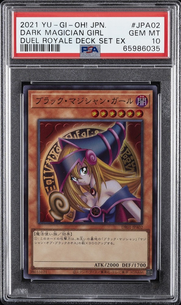 2021 YU-GI-OH! JAPANESE DUEL ROYALE DECK SET EX #JPA02 DARK MAGICIAN GIRL PSA 10 2021 YU-GI-OH! JAPANESE DUEL ROYALE DECK SET EX #JPA02 DARK MAGICIAN GIRL PSA 10 Purchase Info Thank you for your interest in this item consigned with PSA! By purchasing or making an offer on this item, you acknowledge and agree to the following terms: All sales are final. Returns not accepted. Payment must be made upon purchase of the item. All items are sold "as is" and without warranty of Collectors Universe, Inc. (d/b/a PSA), and ANY AND ALL IMPLIED WARRANTIES ARE DISCLAIMED AND EXCLUDED. Sales tax may apply depending on shipping address. PSA does not guarantee that another third-party grading company's authentication or certification of an item as genuine is correct or accurate. Neither a difference of opinion between third-party grading companies about authenticity, nor a company's subsequent reversal of its earlier authentication or certification of an item, will be a basis for rescinding a sale. Any dispute with another third-party grading company relating to the authenticity of an item must be resolved directly with that other company. Collectors' maximum liability in the event of loss or damage to an item during shipping will be the lesser of (a) the price paid for the item and (b) the change in fair market value of the item. You release Collectors from all other liability including for any claims of punitive damages, emotional distress, consequential damages, lost profits, or lost interest, except as prohibited by law. Shipping Purchased Items will be shipped directly from PSA Vault. You stay hands-free. PSA Vault When you purchase this item, you can save on sales tax and selling fees by keeping it in the PSA Vault, official Vault of eBay. Items already in PSA Vault and will be sent to PSA Vault will have no shipping charge Storage of any items with the PSA Vault will be subject to the PSA Vault Terms of Service. Consignment PSA has competitive rates on the world's largest collectibles marketplace with the option to list from the PSA Vault or immediately after PSA authentication and grading. Sale Price Under $100 $100 - $499 $500 - $999 $1,000 - $2,499 $2,500 - $4,999 $5,000+ Seller Fee 16% 14% 13% 10% 9% 7% Sellers pay a single fee as reflected above; no additional eBay fees are incurred. There is a $5 minimum fee on sold items.