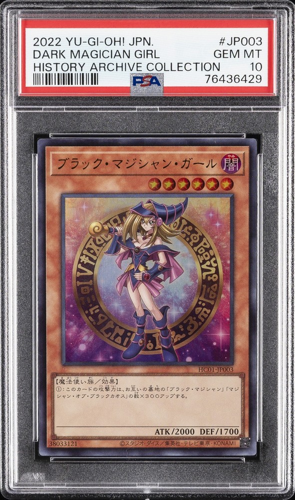 2022 YU-GI-OH! JAPANESE HC01-HISTORY ARCHIVE COLLECTION #JP003 DARK MAGICIAN GIRL PSA 10 2022 YU-GI-OH! JAPANESE HC01-HISTORY ARCHIVE COLLECTION #JP003 DARK MAGICIAN GIRL PSA 10 Purchase Info Thank you for your interest in bidding on this item consigned with PSA! By bidding on this item, you acknowledge and agree to the following terms: All sales are final. Returns not accepted. Payment must be made within 7 days of auction close. All items are sold "as is" and without warranty of Collectors Universe, Inc. (d/b/a PSA), and ANY AND ALL IMPLIED WARRANTIES ARE DISCLAIMED AND EXCLUDED. Sales tax may apply depending on shipping address. PSA does not guarantee that another third-party grading company's authentication or certification of an item as genuine is correct or accurate. Neither a difference of opinion between third-party grading companies about authenticity, nor a company's subsequent reversal of its earlier authentication or certification of an item, will be a basis for rescinding a sale. Any dispute with another third-party grading company relating to the authenticity of an item must be resolved directly with that other company. Collectors' maximum liability in the event of loss or damage to an item during shipping will be the lesser of (a) the price paid for the item and (b) the change in fair market value of the item. You release Collectors from all other liability including for any claims of punitive damages, emotional distress, consequential damages, lost profits, or lost interest, except as prohibited by law. Shipping Purchased Items will be shipped directly from PSA Vault. You stay hands-free. PSA Vault When you purchase this item, you can save on sales tax and selling fees by keeping it in the PSA Vault, official Vault of eBay. Items already in PSA Vault and will be sent to PSA Vault will have no shipping charge Storage of any items with the PSA Vault will be subject to the PSA Vault Terms of Service. Consignment PSA has competitive auction rates on the world's largest collectibles marketplace with the option to list from the PSA Vault or immediately after PSA authentication and grading. Sale Price Under $100 $100 - $499 $500 - $999 $1,000 - $2,499 $2,500 - $4,999 $5,000+ Seller Fee 13% + $3 flat 13% 12% 10% 9% 7% Sellers pay a single fee as reflected above; no additional eBay fees are incurred.