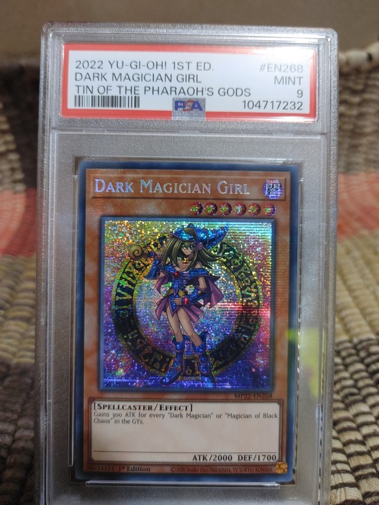 The 2022 Yugioh Tin of Pharaoh's Gods Dark Magician Girl #EN268 PSA 9 is a highly sought-after collectible card game item featuring the iconic Yu-Gi-Oh! TCG character Dark Magician Girl. Produced by Konami in 2022, this English-language standard-sized card is a monster type suitable for players aged 6 and above. With its dark attribute and PSA 9 grade, this card is a valuable addition to any Yugioh collection, perfect for fans of the game looking to enhance their decks and showcase their love for the series.