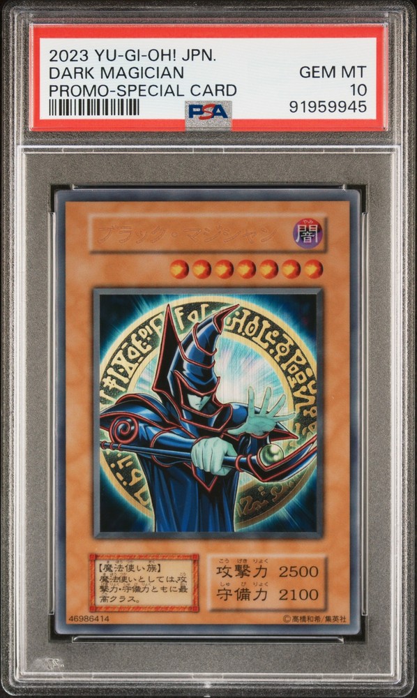 2023 YU-GI-OH! JAPANESE PROMO SPECIAL CARD DARK MAGICIAN PSA 10 2023 YU-GI-OH! JAPANESE PROMO SPECIAL CARD DARK MAGICIAN PSA 10 Purchase Info Thank you for your interest in this item consigned with PSA! By purchasing or making an offer on this item, you acknowledge and agree to the following terms: All sales are final. Returns not accepted. Payment must be made upon purchase of the item. All items are sold "as is" and without warranty of Collectors Universe, Inc. (d/b/a PSA), and ANY AND ALL IMPLIED WARRANTIES ARE DISCLAIMED AND EXCLUDED. Sales tax may apply depending on shipping address. PSA does not guarantee that another third-party grading company's authentication or certification of an item as genuine is correct or accurate. Neither a difference of opinion between third-party grading companies about authenticity, nor a company's subsequent reversal of its earlier authentication or certification of an item, will be a basis for rescinding a sale. Any dispute with another third-party grading company relating to the authenticity of an item must be resolved directly with that other company. Collectors' maximum liability in the event of loss or damage to an item during shipping will be the lesser of (a) the price paid for the item and (b) the change in fair market value of the item. You release Collectors from all other liability including for any claims of punitive damages, emotional distress, consequential damages, lost profits, or lost interest, except as prohibited by law. Shipping Purchased Items will be shipped directly from PSA Vault. You stay hands-free. PSA Vault When you purchase this item, you can save on sales tax and selling fees by keeping it in the PSA Vault, official Vault of eBay. Items already in PSA Vault and will be sent to PSA Vault will have no shipping charge Storage of any items with the PSA Vault will be subject to the PSA Vault Terms of Service. Consignment PSA has competitive rates on the world's largest collectibles marketplace with the option to list from the PSA Vault or immediately after PSA authentication and grading. Sale Price Under $100 $100 - $499 $500 - $999 $1,000 - $2,499 $2,500 - $4,999 $5,000+ Seller Fee 16% 14% 13% 10% 9% 7% Sellers pay a single fee as reflected above; no additional eBay fees are incurred. There is a $5 minimum fee on sold items.