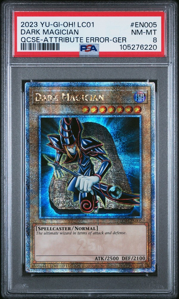 2023 YU-GI-OH! LC01-LEGENDARY COLLECTION: 25TH ANNIVERSARY EDITION QUARTER CENTURY SECRET RARE-ATTRIBUTE ERROR-GERMAN #EN005 DARK MAGICIAN PSA 8 2023 YU-GI-OH! LC01-LEGENDARY COLLECTION: 25TH ANNIVERSARY EDITION QUARTER CENTURY SECRET RARE-ATTRIBUTE ERROR-GERMAN #EN005 DARK MAGICIAN PSA 8 Purchase Info Thank you for your interest in this item consigned with PSA! By purchasing or making an offer on this item, you acknowledge and agree to the following terms: All sales are final. Returns not accepted. Payment must be made upon purchase of the item. All items are sold "as is" and without warranty of Collectors Universe, Inc. (d/b/a PSA), and ANY AND ALL IMPLIED WARRANTIES ARE DISCLAIMED AND EXCLUDED. Sales tax may apply depending on shipping address. PSA does not guarantee that another third-party grading company's authentication or certification of an item as genuine is correct or accurate. Neither a difference of opinion between third-party grading companies about authenticity, nor a company's subsequent reversal of its earlier authentication or certification of an item, will be a basis for rescinding a sale. Any dispute with another third-party grading company relating to the authenticity of an item must be resolved directly with that other company. Collectors' maximum liability in the event of loss or damage to an item during shipping will be the lesser of (a) the price paid for the item and (b) the change in fair market value of the item. You release Collectors from all other liability including for any claims of punitive damages, emotional distress, consequential damages, lost profits, or lost interest, except as prohibited by law. Shipping Purchased Items will be shipped directly from PSA Vault. You stay hands-free. PSA Vault When you purchase this item, you can save on sales tax and selling fees by keeping it in the PSA Vault, official Vault of eBay. Items already in PSA Vault and will be sent to PSA Vault will have no shipping charge Storage of any items with the PSA Vault will be subject to the PSA Vault Terms of Service. Consignment PSA has competitive rates on the world's largest collectibles marketplace with the option to list from the PSA Vault or immediately after PSA authentication and grading. Sale Price Under $100 $100 - $499 $500 - $999 $1,000 - $2,499 $2,500 - $4,999 $5,000+ Seller Fee 16% 14% 13% 10% 9% 7% Sellers pay a single fee as reflected above; no additional eBay fees are incurred. There is a $5 minimum fee on sold items.