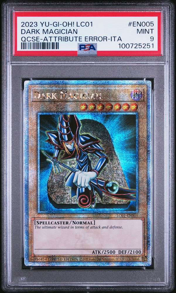 2023 YU-GI-OH! LC01-LEGENDARY COLLECTION: 25TH ANNIVERSARY EDITION QUARTER CENTURY SECRET RARE-ATTRIBUTE ERROR-ITALIAN #EN005 DARK MAGICIAN PSA 9 2023 YU-GI-OH! LC01-LEGENDARY COLLECTION: 25TH ANNIVERSARY EDITION QUARTER CENTURY SECRET RARE-ATTRIBUTE ERROR-ITALIAN #EN005 DARK MAGICIAN PSA 9 Purchase Info Thank you for your interest in this item consigned with PSA! By purchasing or making an offer on this item, you acknowledge and agree to the following terms: All sales are final. Returns not accepted. Payment must be made upon purchase of the item. All items are sold "as is" and without warranty of Collectors Universe, Inc. (d/b/a PSA), and ANY AND ALL IMPLIED WARRANTIES ARE DISCLAIMED AND EXCLUDED. Sales tax may apply depending on shipping address. PSA does not guarantee that another third-party grading company's authentication or certification of an item as genuine is correct or accurate. Neither a difference of opinion between third-party grading companies about authenticity, nor a company's subsequent reversal of its earlier authentication or certification of an item, will be a basis for rescinding a sale. Any dispute with another third-party grading company relating to the authenticity of an item must be resolved directly with that other company. Collectors' maximum liability in the event of loss or damage to an item during shipping will be the lesser of (a) the price paid for the item and (b) the change in fair market value of the item. You release Collectors from all other liability including for any claims of punitive damages, emotional distress, consequential damages, lost profits, or lost interest, except as prohibited by law. Shipping Purchased Items will be shipped directly from PSA Vault. You stay hands-free. PSA Vault When you purchase this item, you can save on sales tax and selling fees by keeping it in the PSA Vault, official Vault of eBay. Items already in PSA Vault and will be sent to PSA Vault will have no shipping charge Storage of any items with the PSA Vault will be subject to the PSA Vault Terms of Service. Consignment PSA has competitive rates on the world's largest collectibles marketplace with the option to list from the PSA Vault or immediately after PSA authentication and grading. Sale Price Under $100 $100 - $499 $500 - $999 $1,000 - $2,499 $2,500 - $4,999 $5,000+ Seller Fee 16% 14% 13% 10% 9% 7% Sellers pay a single fee as reflected above; no additional eBay fees are incurred. There is a $5 minimum fee on sold items.
