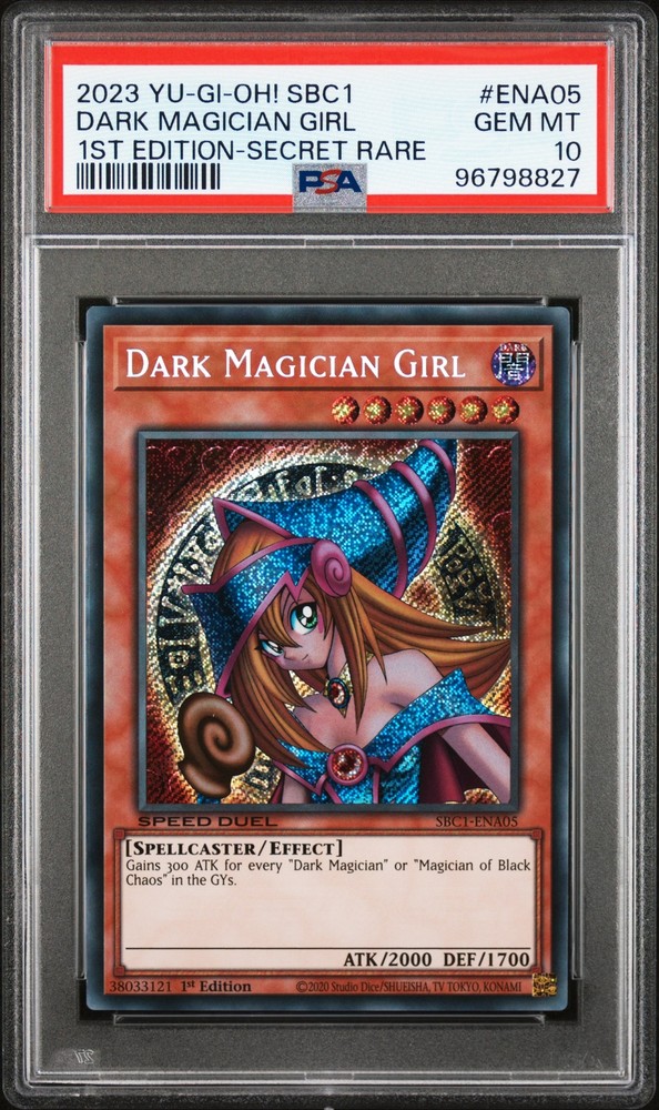 2023 YU-GI-OH! SBC1-SPEED DUEL STREETS OF BATTLE CITY 1ST EDITION-SECRET RARE #ENA05 DARK MAGICIAN GIRL PSA 10 2023 YU-GI-OH! SBC1-SPEED DUEL STREETS OF BATTLE CITY 1ST EDITION-SECRET RARE #ENA05 DARK MAGICIAN GIRL PSA 10 Purchase Info Thank you for your interest in this item consigned with PSA! By purchasing or making an offer on this item, you acknowledge and agree to the following terms: All sales are final. Returns not accepted. Payment must be made upon purchase of the item. All items are sold "as is" and without warranty of Collectors Universe, Inc. (d/b/a PSA), and ANY AND ALL IMPLIED WARRANTIES ARE DISCLAIMED AND EXCLUDED. Sales tax may apply depending on shipping address. PSA does not guarantee that another third-party grading company's authentication or certification of an item as genuine is correct or accurate. Neither a difference of opinion between third-party grading companies about authenticity, nor a company's subsequent reversal of its earlier authentication or certification of an item, will be a basis for rescinding a sale. Any dispute with another third-party grading company relating to the authenticity of an item must be resolved directly with that other company. Collectors' maximum liability in the event of loss or damage to an item during shipping will be the lesser of (a) the price paid for the item and (b) the change in fair market value of the item. You release Collectors from all other liability including for any claims of punitive damages, emotional distress, consequential damages, lost profits, or lost interest, except as prohibited by law. Shipping Purchased Items will be shipped directly from PSA Vault. You stay hands-free. PSA Vault When you purchase this item, you can save on sales tax and selling fees by keeping it in the PSA Vault, official Vault of eBay. Items already in PSA Vault and will be sent to PSA Vault will have no shipping charge Storage of any items with the PSA Vault will be subject to the PSA Vault Terms of Service. Consignment PSA has competitive rates on the world's largest collectibles marketplace with the option to list from the PSA Vault or immediately after PSA authentication and grading. Sale Price Under $100 $100 - $499 $500 - $999 $1,000 - $2,499 $2,500 - $4,999 $5,000+ Seller Fee 16% 14% 13% 10% 9% 7% Sellers pay a single fee as reflected above; no additional eBay fees are incurred. There is a $5 minimum fee on sold items.