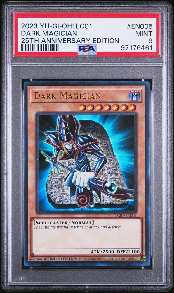 This is a rare and limited edition 2023 Yu-Gi-Oh! Dark Magician card with a PSA 9 Mint rating. It features the iconic Dark attribute and is from the Yugi set. The card name is "Dark Magician" and it is perfect for collectors and players of the Yu-Gi-Oh! TCG game. The card is in great shape and has been well-preserved. It is a must-have for any serious Yu-Gi-Oh! collector.