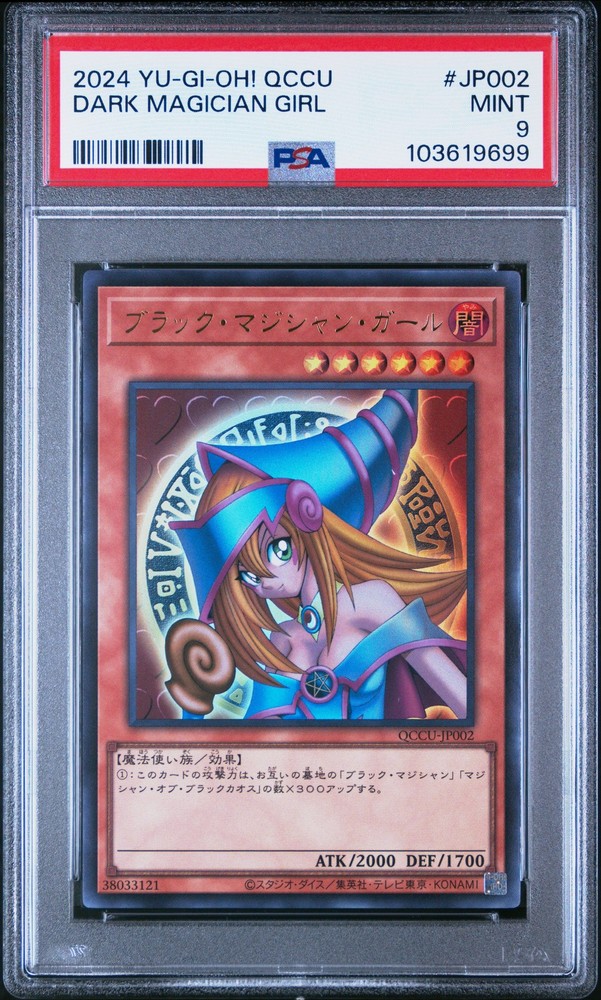 2024 YU-GI-OH! JAPANESE QCCU-QUARTER CENTURY CHRONICLE SIDE:UNITY #JP002 DARK MAGICIAN GIRL PSA 9 2024 YU-GI-OH! JAPANESE QCCU-QUARTER CENTURY CHRONICLE SIDE:UNITY #JP002 DARK MAGICIAN GIRL PSA 9 Purchase Info Thank you for your interest in this item consigned with PSA! By purchasing or making an offer on this item, you acknowledge and agree to the following terms: All sales are final. Returns not accepted. Payment must be made upon purchase of the item. All items are sold "as is" and without warranty of Collectors Universe, Inc. (d/b/a PSA), and ANY AND ALL IMPLIED WARRANTIES ARE DISCLAIMED AND EXCLUDED. Sales tax may apply depending on shipping address. PSA does not guarantee that another third-party grading company's authentication or certification of an item as genuine is correct or accurate. Neither a difference of opinion between third-party grading companies about authenticity, nor a company's subsequent reversal of its earlier authentication or certification of an item, will be a basis for rescinding a sale. Any dispute with another third-party grading company relating to the authenticity of an item must be resolved directly with that other company. Collectors' maximum liability in the event of loss or damage to an item during shipping will be the lesser of (a) the price paid for the item and (b) the change in fair market value of the item. You release Collectors from all other liability including for any claims of punitive damages, emotional distress, consequential damages, lost profits, or lost interest, except as prohibited by law. Shipping Purchased Items will be shipped directly from PSA Vault. You stay hands-free. PSA Vault When you purchase this item, you can save on sales tax and selling fees by keeping it in the PSA Vault, official Vault of eBay. Items already in PSA Vault and will be sent to PSA Vault will have no shipping charge Storage of any items with the PSA Vault will be subject to the PSA Vault Terms of Service. Consignment PSA has competitive rates on the world's largest collectibles marketplace with the option to list from the PSA Vault or immediately after PSA authentication and grading. Sale Price Under $100 $100 - $499 $500 - $999 $1,000 - $2,499 $2,500 - $4,999 $5,000+ Seller Fee 16% 14% 13% 10% 9% 7% Sellers pay a single fee as reflected above; no additional eBay fees are incurred. There is a $5 minimum fee on sold items.