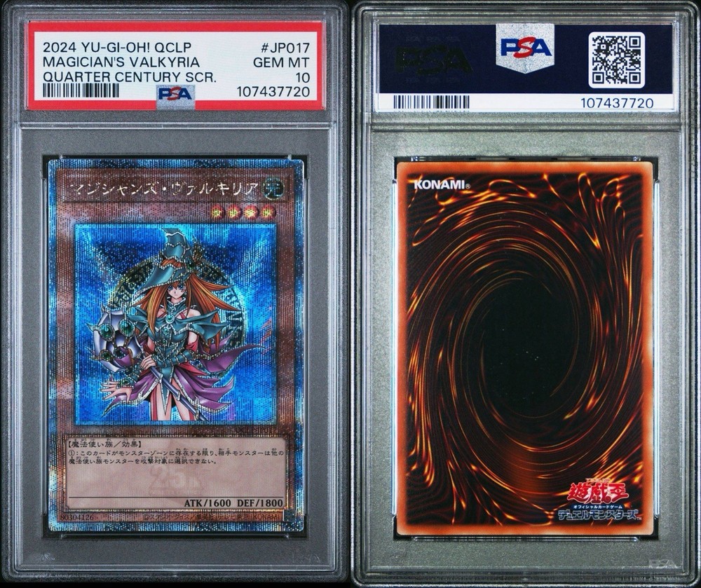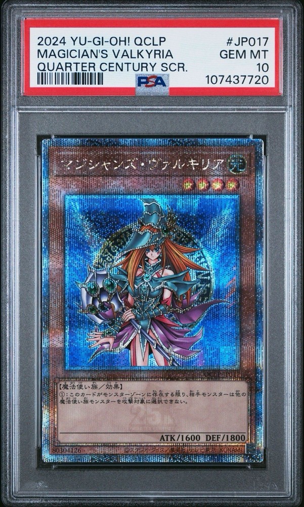 The product is a rare and sought after Yu-Gi-Oh! trading card, Magician's Valkyria, from the 2024 Japanese Quarter Century Limited Pack. This PSA 10 graded card features the dark attribute, Japanese card size, and is part of the Yu-Gi-Oh! TCG game. Manufactured by Konami, the card is a Secret Rare with a foil finish, making it a valuable addition to any collector's deck. The card's unique character and limited availability make it a must-have for fans of the Yu-Gi-Oh! franchise. Any question just ask! Thanks for looking!