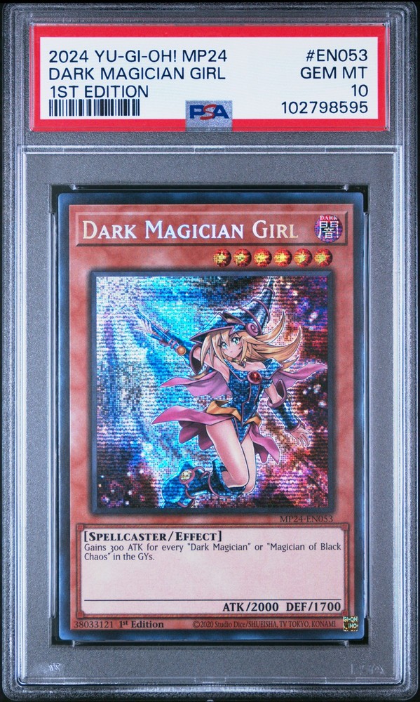 2024 YU-GI-OH! MP24-25TH ANNIVERSARY TIN: DUELING MIRRORS 1ST EDITION #EN053 DARK MAGICIAN GIRL PSA 10 2024 YU-GI-OH! MP24-25TH ANNIVERSARY TIN: DUELING MIRRORS 1ST EDITION #EN053 DARK MAGICIAN GIRL PSA 10 Purchase Info Thank you for your interest in this item consigned with PSA! By purchasing or making an offer on this item, you acknowledge and agree to the following terms: All sales are final. Returns not accepted. Payment must be made upon purchase of the item. All items are sold "as is" and without warranty of Collectors Universe, Inc. (d/b/a PSA), and ANY AND ALL IMPLIED WARRANTIES ARE DISCLAIMED AND EXCLUDED. Sales tax may apply depending on shipping address. PSA does not guarantee that another third-party grading company's authentication or certification of an item as genuine is correct or accurate. Neither a difference of opinion between third-party grading companies about authenticity, nor a company's subsequent reversal of its earlier authentication or certification of an item, will be a basis for rescinding a sale. Any dispute with another third-party grading company relating to the authenticity of an item must be resolved directly with that other company. Collectors' maximum liability in the event of loss or damage to an item during shipping will be the lesser of (a) the price paid for the item and (b) the change in fair market value of the item. You release Collectors from all other liability including for any claims of punitive damages, emotional distress, consequential damages, lost profits, or lost interest, except as prohibited by law. Shipping Purchased Items will be shipped directly from PSA Vault. You stay hands-free. PSA Vault When you purchase this item, you can save on sales tax and selling fees by keeping it in the PSA Vault, official Vault of eBay. Items already in PSA Vault and will be sent to PSA Vault will have no shipping charge Storage of any items with the PSA Vault will be subject to the PSA Vault Terms of Service. Consignment PSA has competitive rates on the world's largest collectibles marketplace with the option to list from the PSA Vault or immediately after PSA authentication and grading. Sale Price Under $100 $100 - $499 $500 - $999 $1,000 - $2,499 $2,500 - $4,999 $5,000+ Seller Fee 16% 14% 13% 10% 9% 7% Sellers pay a single fee as reflected above; no additional eBay fees are incurred. There is a $5 minimum fee on sold items.