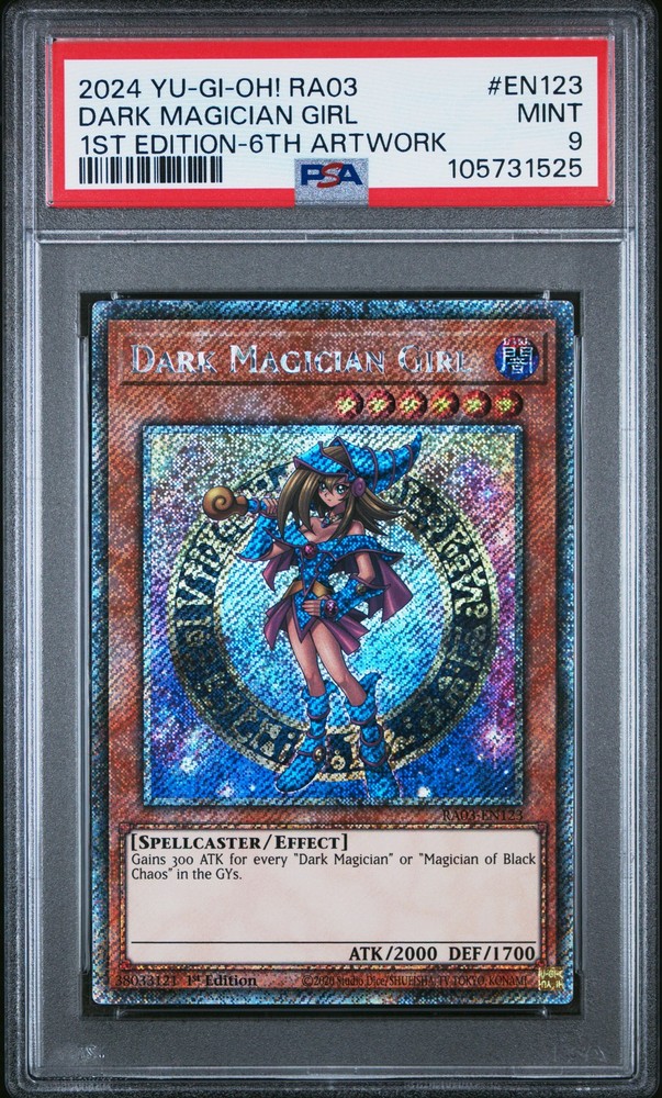 2024 YU-GI-OH! RA03-QUARTER CENTURY BONANZA 1ST EDITION-6TH TCG ARTWORK #EN123 DARK MAGICIAN GIRL PSA 9 2024 YU-GI-OH! RA03-QUARTER CENTURY BONANZA 1ST EDITION-6TH TCG ARTWORK #EN123 DARK MAGICIAN GIRL PSA 9 Purchase Info Thank you for your interest in this item consigned with PSA! By purchasing or making an offer on this item, you acknowledge and agree to the following terms: All sales are final. Returns not accepted. Payment must be made upon purchase of the item. All items are sold "as is" and without warranty of Collectors Universe, Inc. (d/b/a PSA), and ANY AND ALL IMPLIED WARRANTIES ARE DISCLAIMED AND EXCLUDED. Sales tax may apply depending on shipping address. PSA does not guarantee that another third-party grading company's authentication or certification of an item as genuine is correct or accurate. Neither a difference of opinion between third-party grading companies about authenticity, nor a company's subsequent reversal of its earlier authentication or certification of an item, will be a basis for rescinding a sale. Any dispute with another third-party grading company relating to the authenticity of an item must be resolved directly with that other company. Collectors' maximum liability in the event of loss or damage to an item during shipping will be the lesser of (a) the price paid for the item and (b) the change in fair market value of the item. You release Collectors from all other liability including for any claims of punitive damages, emotional distress, consequential damages, lost profits, or lost interest, except as prohibited by law. Shipping Purchased Items will be shipped directly from PSA Vault. You stay hands-free. PSA Vault When you purchase this item, you can save on sales tax and selling fees by keeping it in the PSA Vault, official Vault of eBay. Items already in PSA Vault and will be sent to PSA Vault will have no shipping charge Storage of any items with the PSA Vault will be subject to the PSA Vault Terms of Service. Consignment PSA has competitive rates on the world's largest collectibles marketplace with the option to list from the PSA Vault or immediately after PSA authentication and grading. Sale Price Under $100 $100 - $499 $500 - $999 $1,000 - $2,499 $2,500 - $4,999 $5,000+ Seller Fee 16% 14% 13% 10% 9% 7% Sellers pay a single fee as reflected above; no additional eBay fees are incurred. There is a $5 minimum fee on sold items.