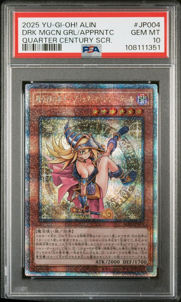 2025 YU-GI-OH! JAPANESE ALIN-ALLIANCE INSIGHT QUARTER CENTURY SECERT RARE #JP004 DARK MAGICIAN GIRL THE MAGICIAN'S APPRENTICE PSA 10 2025 YU-GI-OH! JAPANESE ALIN-ALLIANCE INSIGHT QUARTER CENTURY SECERT RARE #JP004 DARK MAGICIAN GIRL THE MAGICIAN'S APPRENTICE PSA 10 Purchase Info Thank you for your interest in this item consigned with PSA! By purchasing or making an offer on this item, you acknowledge and agree to the following terms: All sales are final. Returns not accepted. Payment must be made upon purchase of the item. All items are sold "as is" and without warranty of Collectors Universe, Inc. (d/b/a PSA), and ANY AND ALL IMPLIED WARRANTIES ARE DISCLAIMED AND EXCLUDED. Sales tax may apply depending on shipping address. PSA does not guarantee that another third-party grading company's authentication or certification of an item as genuine is correct or accurate. Neither a difference of opinion between third-party grading companies about authenticity, nor a company's subsequent reversal of its earlier authentication or certification of an item, will be a basis for rescinding a sale. Any dispute with another third-party grading company relating to the authenticity of an item must be resolved directly with that other company. Collectors' maximum liability in the event of loss or damage to an item during shipping will be the lesser of (a) the price paid for the item and (b) the change in fair market value of the item. You release Collectors from all other liability including for any claims of punitive damages, emotional distress, consequential damages, lost profits, or lost interest, except as prohibited by law. Shipping Purchased Items will be shipped directly from PSA Vault. You stay hands-free. PSA Vault When you purchase this item, you can save on sales tax and selling fees by keeping it in the PSA Vault, official Vault of eBay. Items already in PSA Vault and will be sent to PSA Vault will have no shipping charge Storage of any items with the PSA Vault will be subject to the PSA Vault Terms of Service. Consignment PSA has competitive rates on the world's largest collectibles marketplace with the option to list from the PSA Vault or immediately after PSA authentication and grading. Sale Price Under $100 $100 - $499 $500 - $999 $1,000 - $2,499 $2,500 - $4,999 $5,000+ Seller Fee 16% 14% 13% 10% 9% 7% Sellers pay a single fee as reflected above; no additional eBay fees are incurred. There is a $5 minimum fee on sold items.