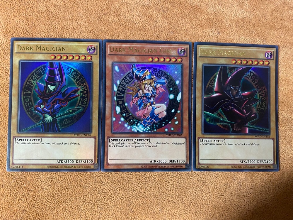 🔥 2X DARK MAGICIAN + 1X DARK MAGICIAN GIRL SET YGLD-ENC09 ENB02 ENB03 ULTRA NM 🔥 YOU WILL RECEIVE ALL THREE CARDS SHOWN IN THE PICTURE ALL THREE ARE IN HOLOGRAPHIC ULTRA RARE 1X DARK MAGICIAN YGLD-ENC09 1X DARK MAGICIAN (ARCANA/RED) YGLD-ENB02 1X DARK MAGICIAN GIRL YGLD-ENB03 ALL THREE ARE GENUINE KONAMI MADE YUGIOH CARDS LEGAL FOR TOURNAMENT PLAY This item will be sent in a plastic sleeve/deck protector sleeve and in a toploader for maximum protection. Shipping is FREE! I usually ship out the next business day. Payment is due immediately. The faster the payment the faster i'll ship out. Questions or comments?? Feel free to contact me. I'll get back to you within 24 hours. Check out my eBay store for more Yugioh items!