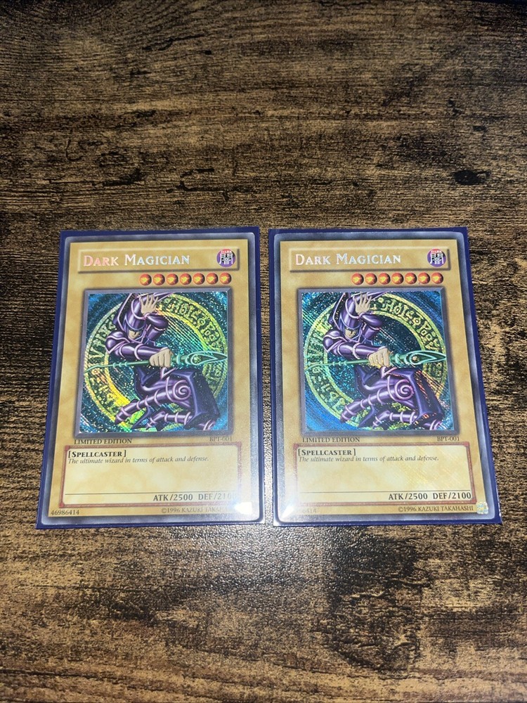 This listing is for the purchase of both copies!(: Reverse Foil Misprints Both Moderately Played! This rare and highly sought-after card is the perfect addition to any collector's Yu-Gi-Oh! TCG collection. With its vintage Secret Rare rarity and limited edition status, the Dark Magician card is a must-have for any serious player. The card features the iconic Spellcaster creature type and a stunning holo finish that is sure to impress. In addition to its rarity and unique features, this card is also notable for its misprint, making it a truly one-of-a-kind item. The card is available in English language and is part of the Collector's Tin set. Don't miss your chance to add this incredible card to your collection today!