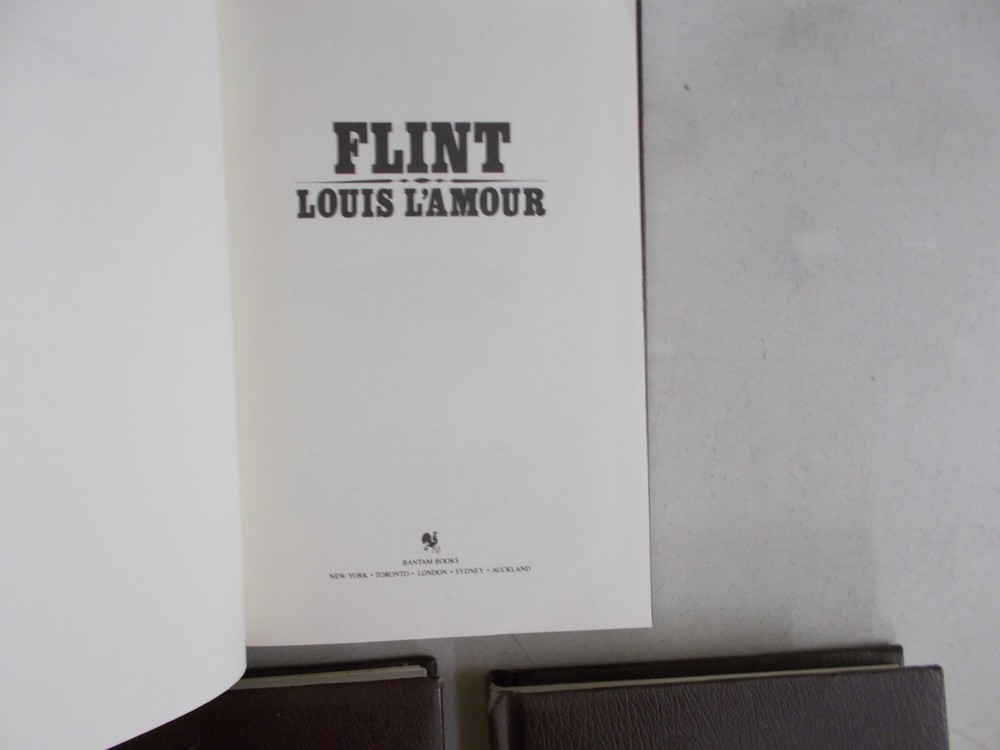This lot of books includes: Flint Silver Canyon - POI, wear corners of cover The Daybreakers We purchase our books for resale so most of them will have old price stickers on the back cover. We do our best to give an honest description of any damage to the books, but what we sell are used books and we have no idea the history of the books. When we list a set of books they are boxed and sent to our warehouse to await sale and shipment. It is not cost effective for us to bring them back to our office and sell just part of a set.