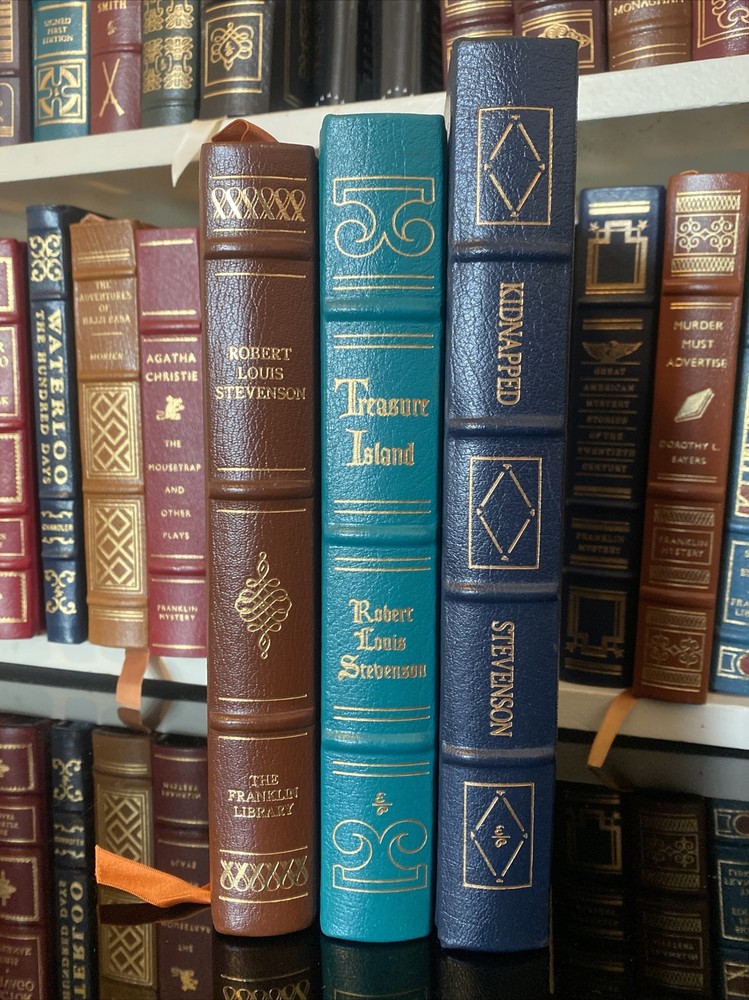 3 Robert Louis Stevenson Books Franklin Library/Easton Press Leather Bound Books. Minor scratches on hold detailing on pages of new Arabian nights and slight rubbing on corners of leather...