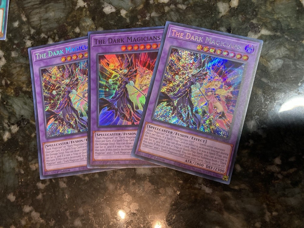 Elevate your Yu-Gi-Oh! TCG collection with the enigmatic "The Dark Magicians," a 1st Edition Super Rare card from the - Yugi - set. Showcasing the mystical allure of Darkness, this card is a must-have for both players and collectors alike. Crafted by the renowned Konami, it stands as a beacon of strategy and style in the world of duelistic engagements. Available in a trio, with two Secret cards included, each pack promises to deliver an edge to your gameplay or an exquisite piece to your collection. "The Dark Magicians" not only promises to bring a unique element to your deck but also serves as a tangible piece of Yu-Gi-Oh! history. Secure this elusive card and watch your adversaries marvel at your Dark Magicians' prowess.