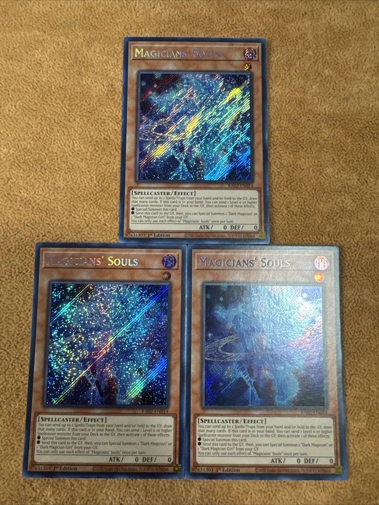 🔥 3x YUGIOH Magicians' Souls RA02-EN014 SECRET RARE PLAYSET NEAR MINT 1ST EDITION This incredible Yu-Gi-Oh! card features the Magicians' Souls spellcaster creature type. The card is made from high-quality card stock material and has a stunning Holo finish. It is a 1st Edition card from the 25th Anniversary Rarity Collection II set, manufactured by Konami in the United States. The card is near mint and comes from a secret rare category, with an English language and a card number of RA02-EN012. It is an effect card type and is suitable for players aged 6+. Get your hands on this amazing card today and add it to your collection! This item will be sent in a plastic sleeve/deck protector sleeve and in a toploader for maximum protection. Shipping is FREE! Payment is due immediately. The faster the payment the faster i'll ship out. Questions or comments?? Feel free to contact me. I'll get back to you within 24 hours. Check out my eBay store for more Yugioh items!