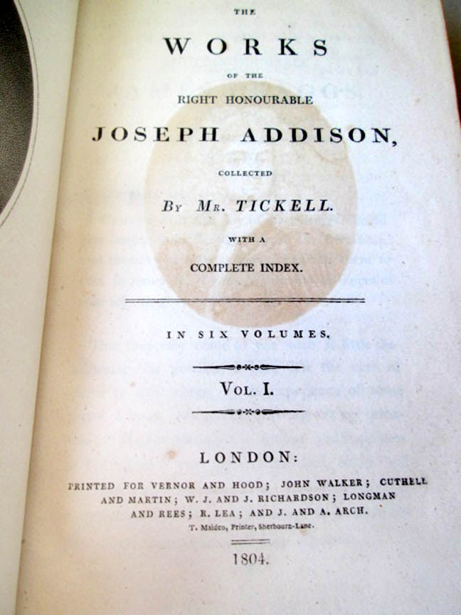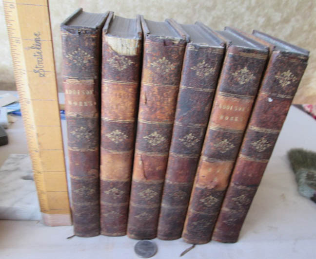 ENLARGED PICTURES!! Please scroll ALL the way down to view LARGER images. A 30 (W212) In 6 Volumes. Printed for Vernor & Hood and others, London. 1804. Octavo. Approx. 450-500 pages, each volume. Each with Index. Leather bound. All with Armorial bookplate of Hugh Blair Esq. Literary critic. Set was in long-ago fire. Spines a little scorched. Missing most labels. Top Edge Gilt, darkened. All hinges cracked. Texts with marbled end papers are perfect. Acceptable condition. Please do not hesitate to e-mail with any questions. As Always, Satisfaction Guaranteed! PAYMENT: PayPal, because eBay requires sellers to list electronic payments exclusively. I expect to receive payment within 10 days, unless we have made other arrangements. MEDIA MAIL: The majority of my books are sent Media Mail to U.S. customers. I add $1.00 for shipping materials, etc. (The shipping price that you see at the top of the page includes the handling fee.) PRIORITY MAIL: I will send both Media cost and Priority cost with invoice, on books which seem to warrant Priority service or when buyer requests it. I'm glad to combine multiple purchases in order to minimize shipping costs. I WILL SHIP INTERNATIONALLY, and I try to be as economical as possible with the shipping costs. Whenever a book will fit comfortably in a Priority Flat Rate Envelope, I'll send it that way. RETURN POLICY: Satisfaction Guaranteed! Payment I accept the following forms of payment: PayPal Shipping & Handling I'm glad to combine multiple purchases for less expensive shipping costs. US Shipping Please check eBay's Shipping & Payment tab USPS Media Mail® International Shipping Please check eBay's Shipping & Payment tab USPS Priority Mail International FREE scheduling, supersized images and templates. Get Vendio Sales Manager. FREE scheduling, supersized images and templates. Get Vendio Sales Manager. Over 100,000,000 served. Get FREE counters from Vendio today! Track Page Views With Auctiva's FREE Counter