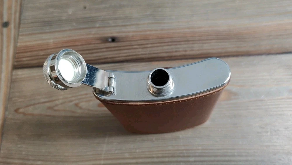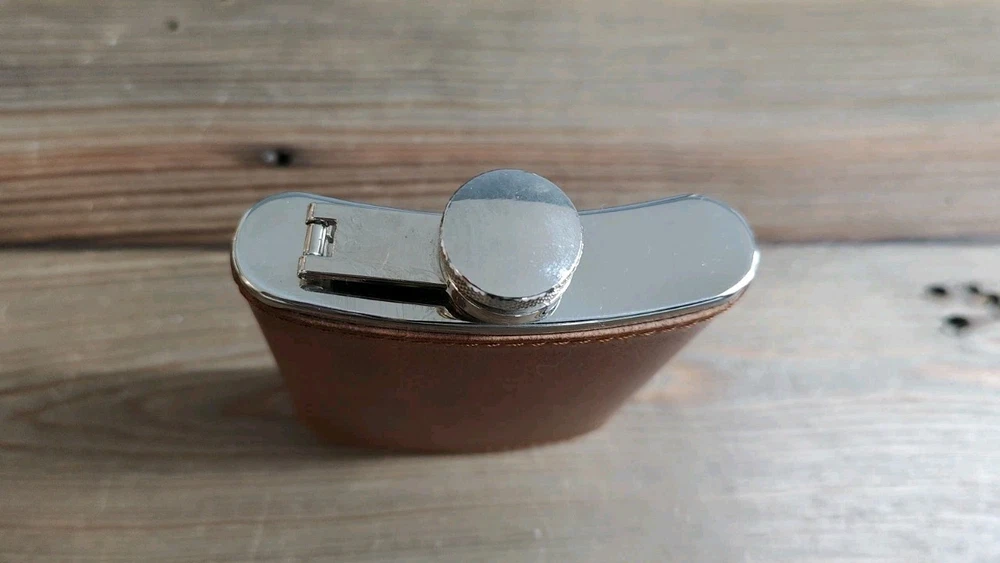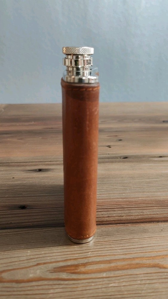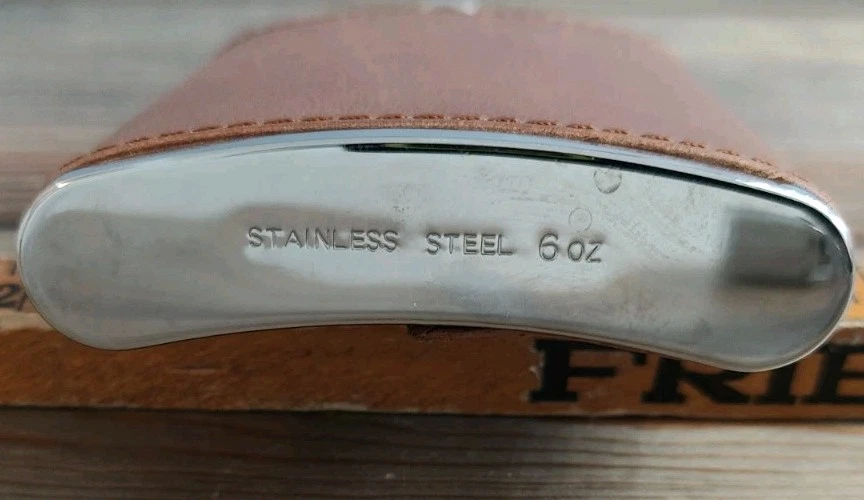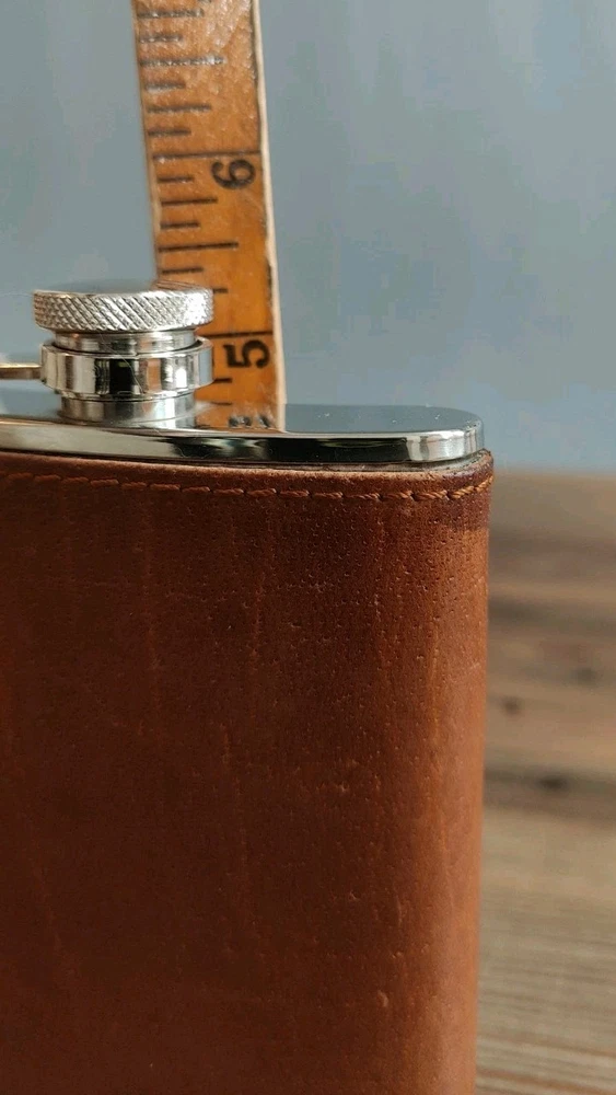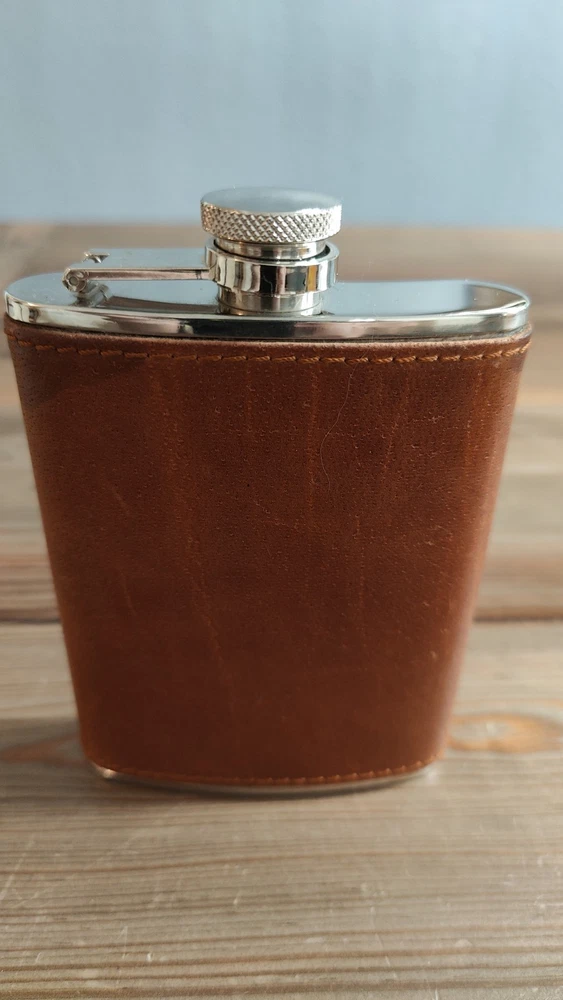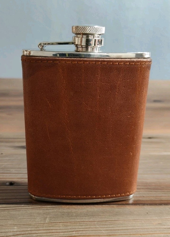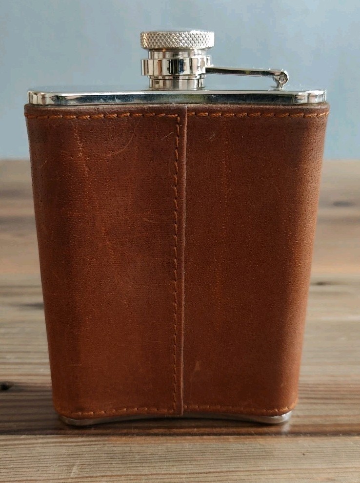 6oz Leather Bound Stainless Steel Hip Flask, Screw Cap Unused.