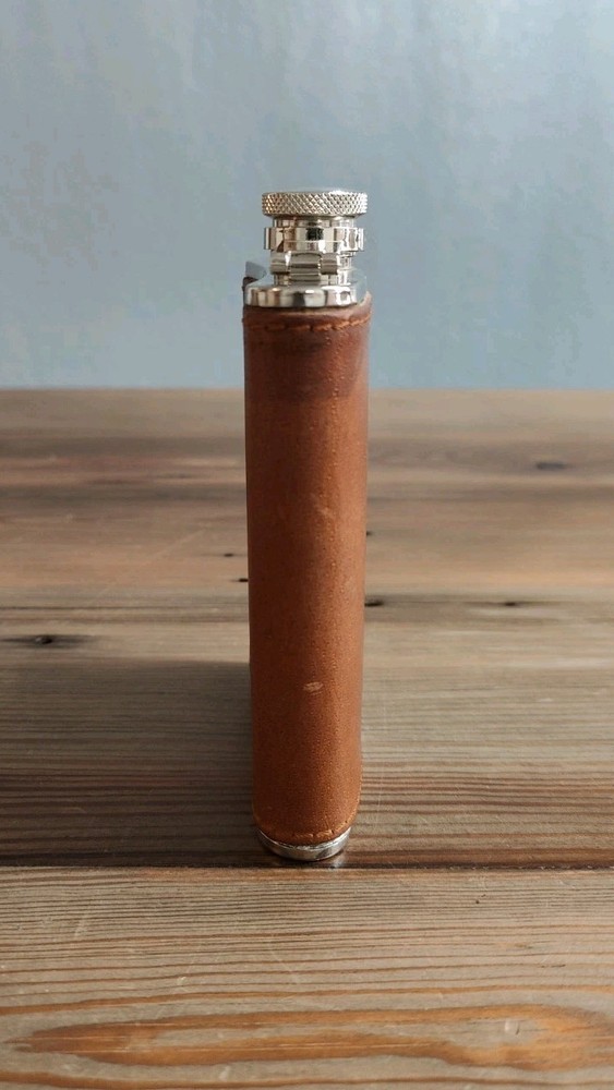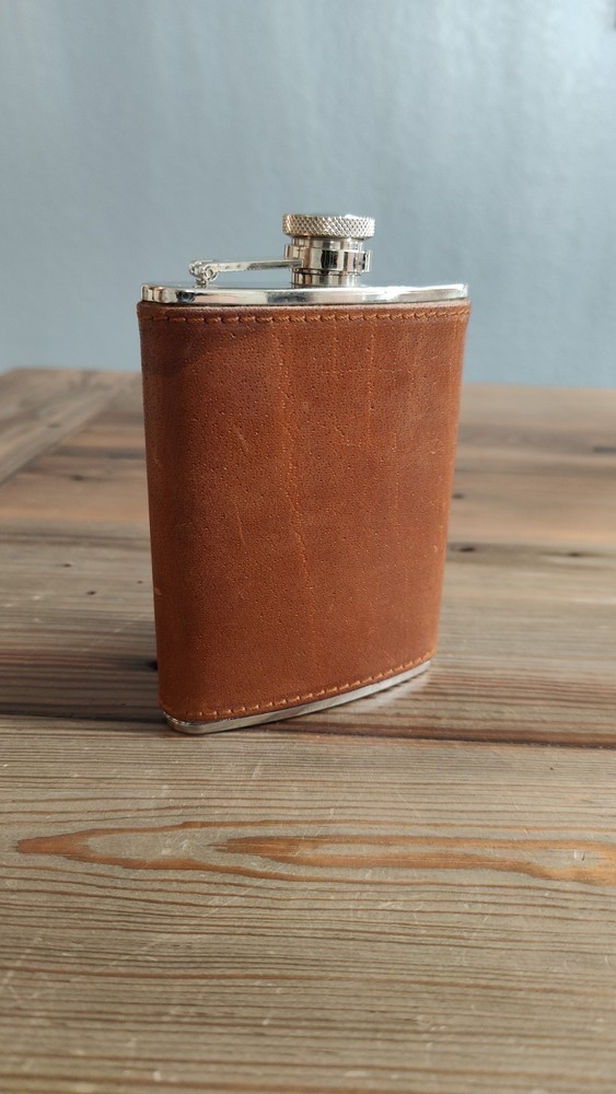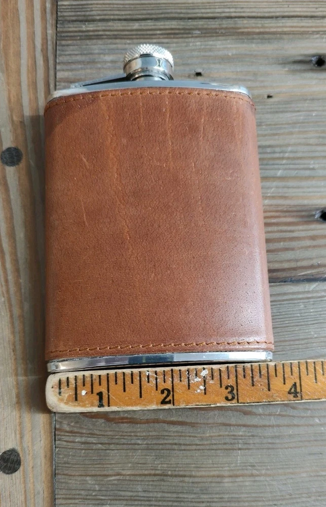6oz Leather Bound Stainless Steel Hip Flask, Screw Cap Unused....