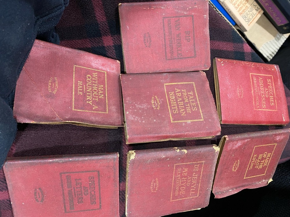 Speeches and Letters- George Washington Speeches and Letters- Abraham Lincoln Man Without a Country- Hale Rip Van Winkle- Washington Irving Mark of the Beast- Kipling Dr. Jeckyl and Mr. Hyde- R. L. Stevenson Tales from the Arabian Nights All part of the Miniature Library Collection