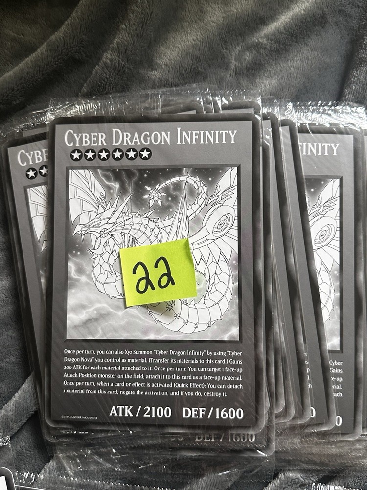 The plastic might not be perfect on all cards please do keep this in mind. 22x Cyber Dragon Infinity 13x Blue Eyes White Dragon 5x Dark Magician Girl 2x The Dark Magicians 6x Stardust Dragon 24x Tour ...