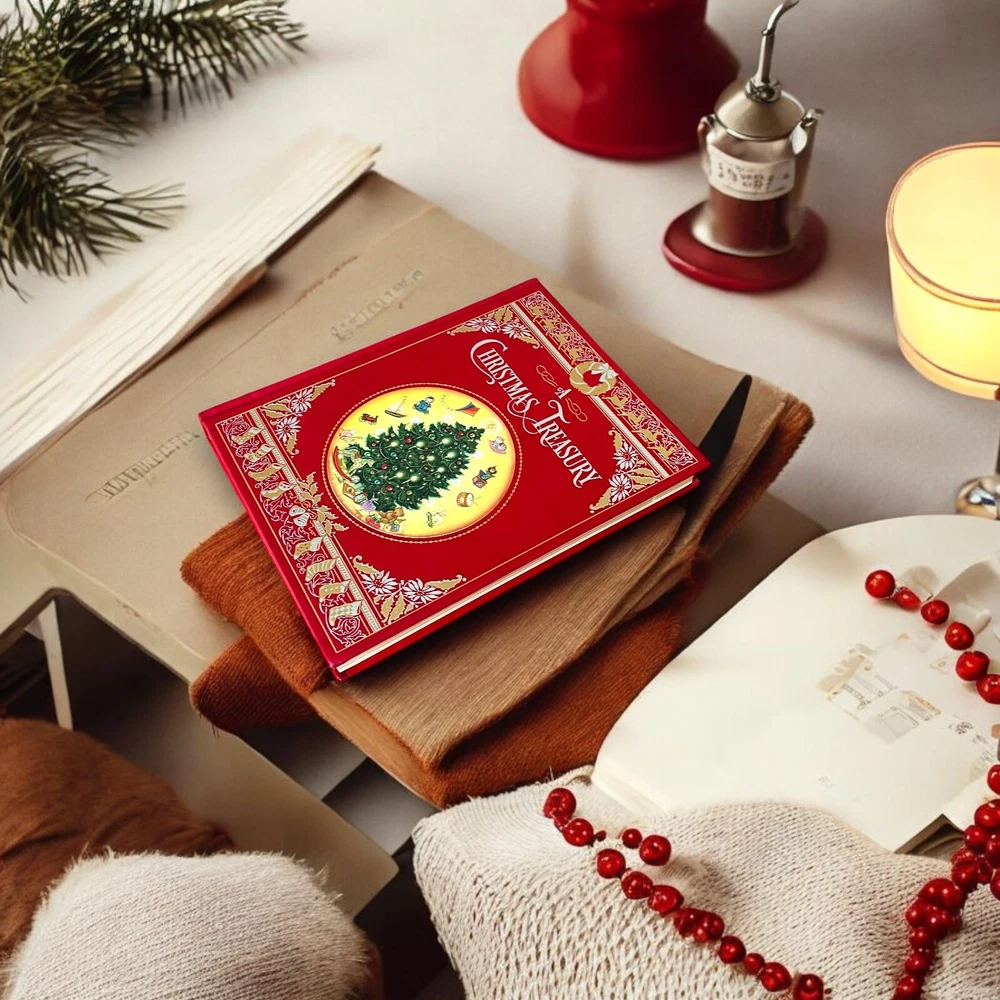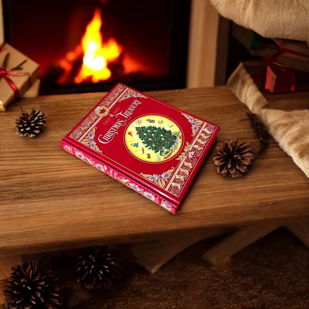 A Christmas Treasury Barnes & Noble Classics Leather Bonded Gilt Featuring a beautifully stamped bonded leather cover, gilt edging, colorful endpapers, and a satin-ribbon bookmark, this collectible edition is a fine addition to any home library. Size: 8.10(w) x 10.30(h) x 1.20(d) Cover illustration by Laurel Long, cover design by Patrice Kaplan. 368p.