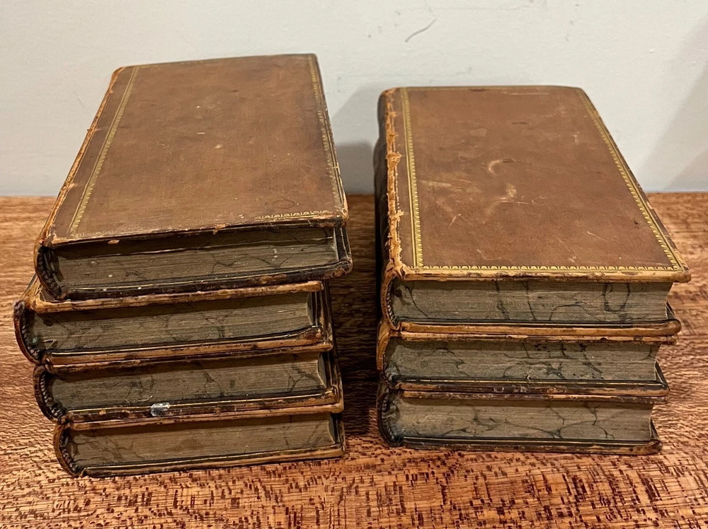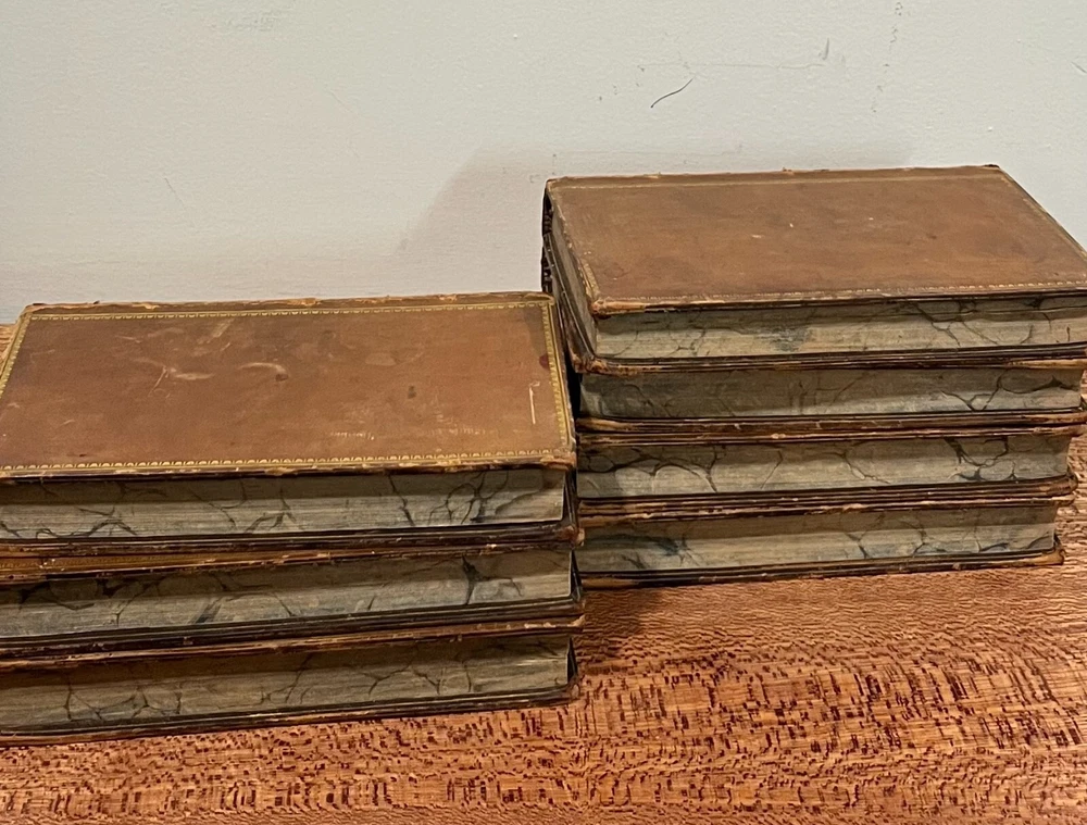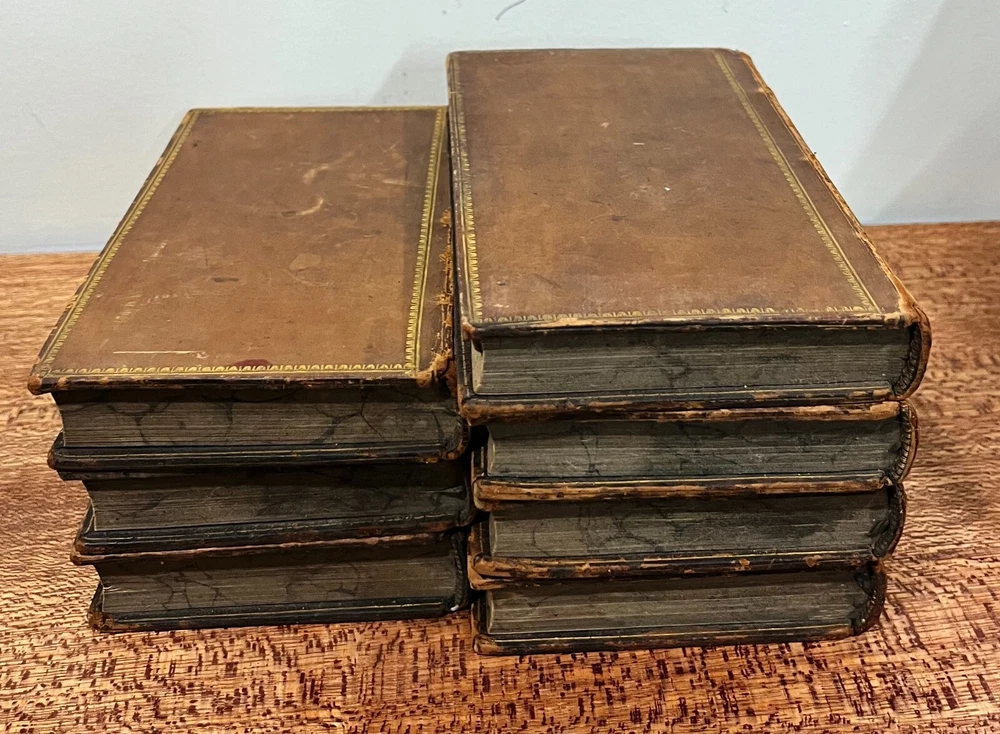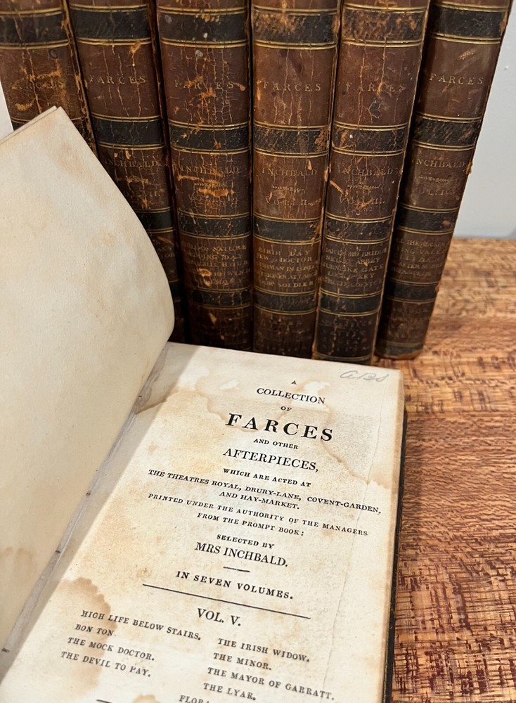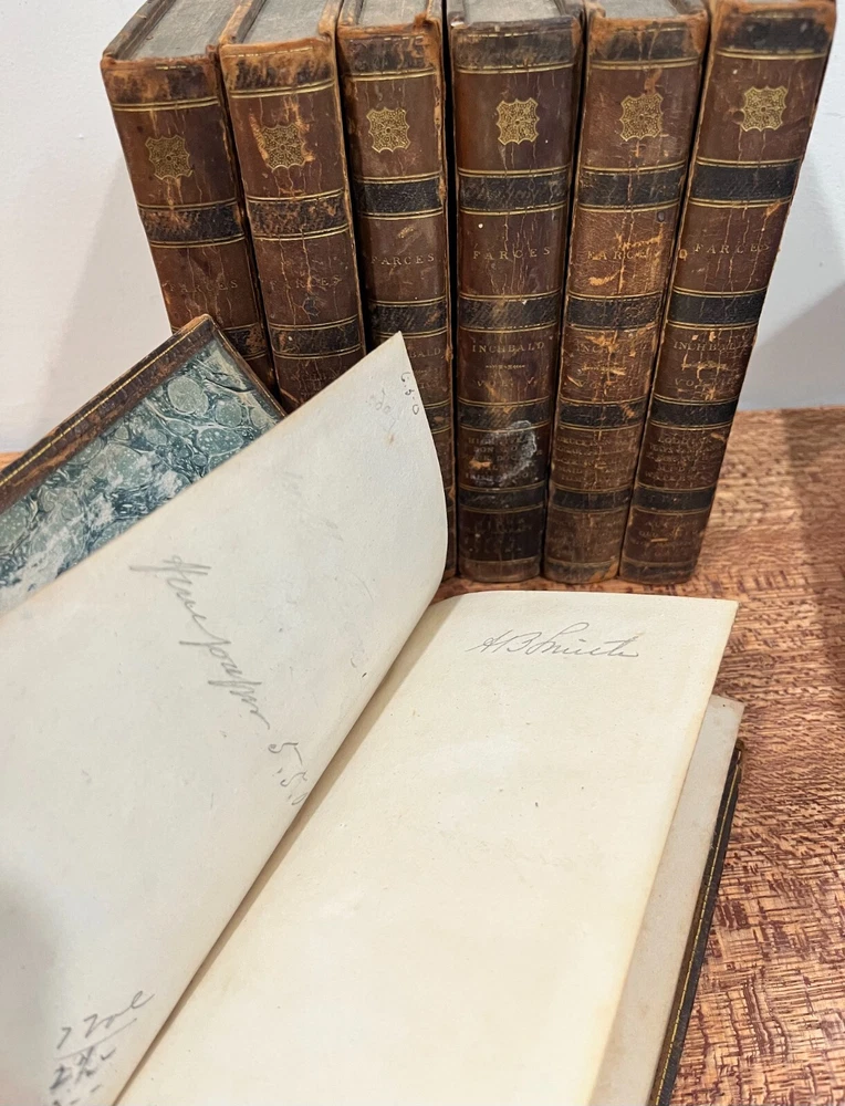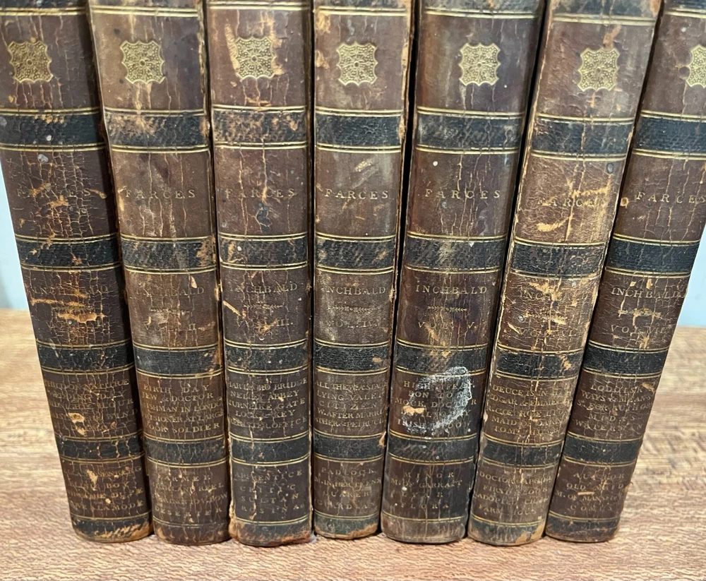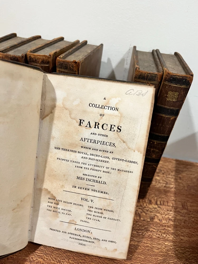 Title: A Collection of Farces and other Afterpieces Publisher: Longman, Hurst, Rees and Orme, London Publication Date: 1809 Binding: Leather Illustrator: None Condition: Very Good Edition: First edition. Book Type: book Description (from AbeBooks): A complete seven volume set of A Collection of Farces and other Afterpieces, which are acted at Theatres Royal, Drury Lane, Covent-Garden and Hay-Market.Each volume contains plays which are comic farces using buffoonery and horseplay typically including crude characterization and improbable situations. Some of the plays that appear across these volumes include Child of Nature, a Drama, The Birth Day, The Critic, Lying Valet, Bon Ton, The First Floor and Midas. Condition: Faded, leather is cracking, paper is very worn (consistent with age)