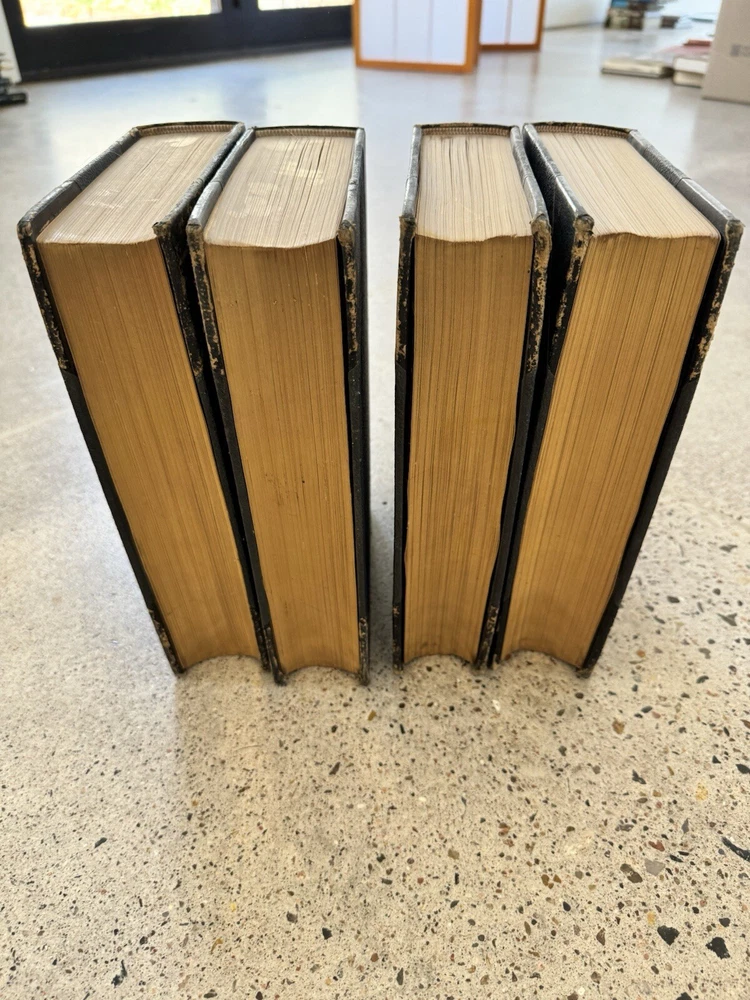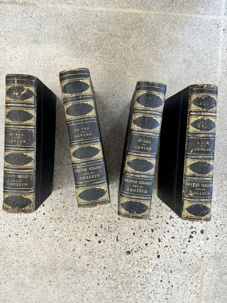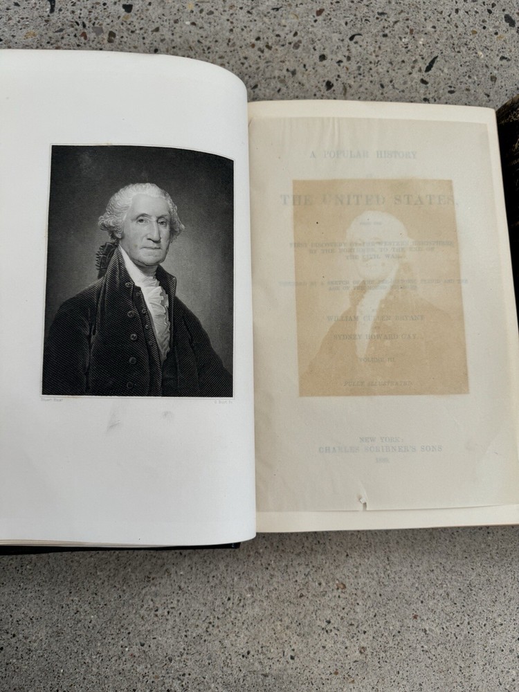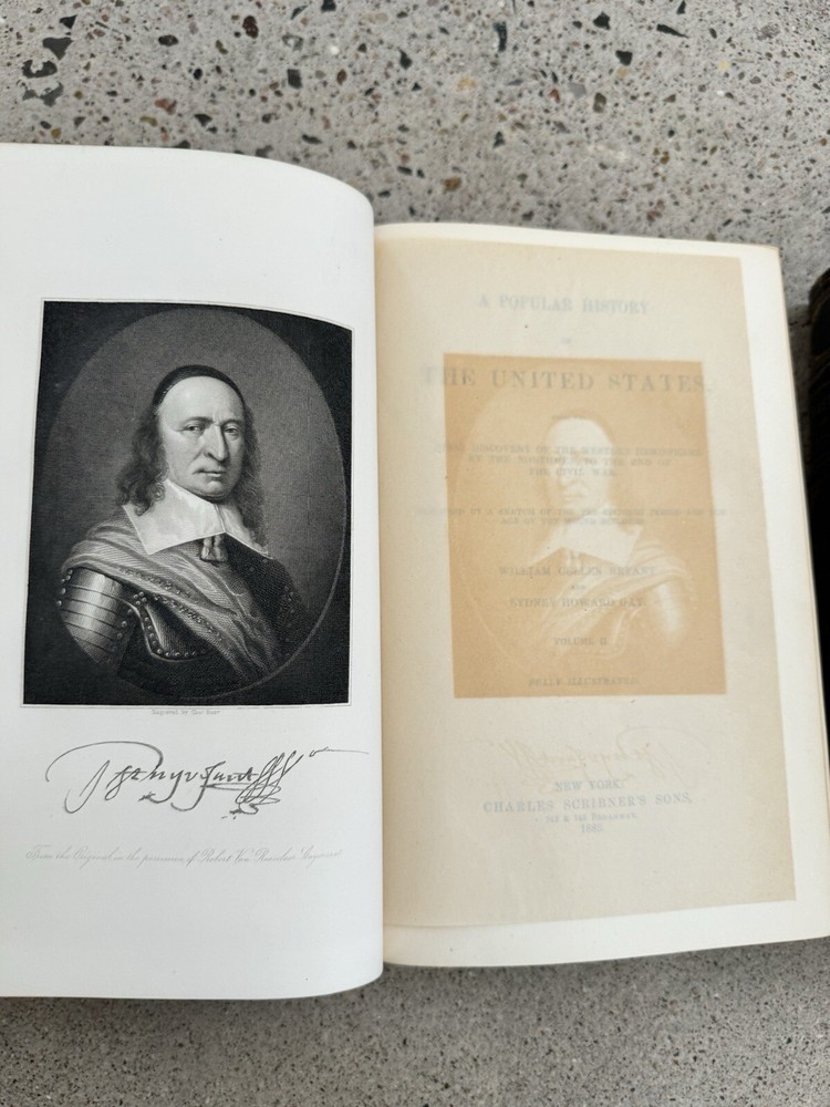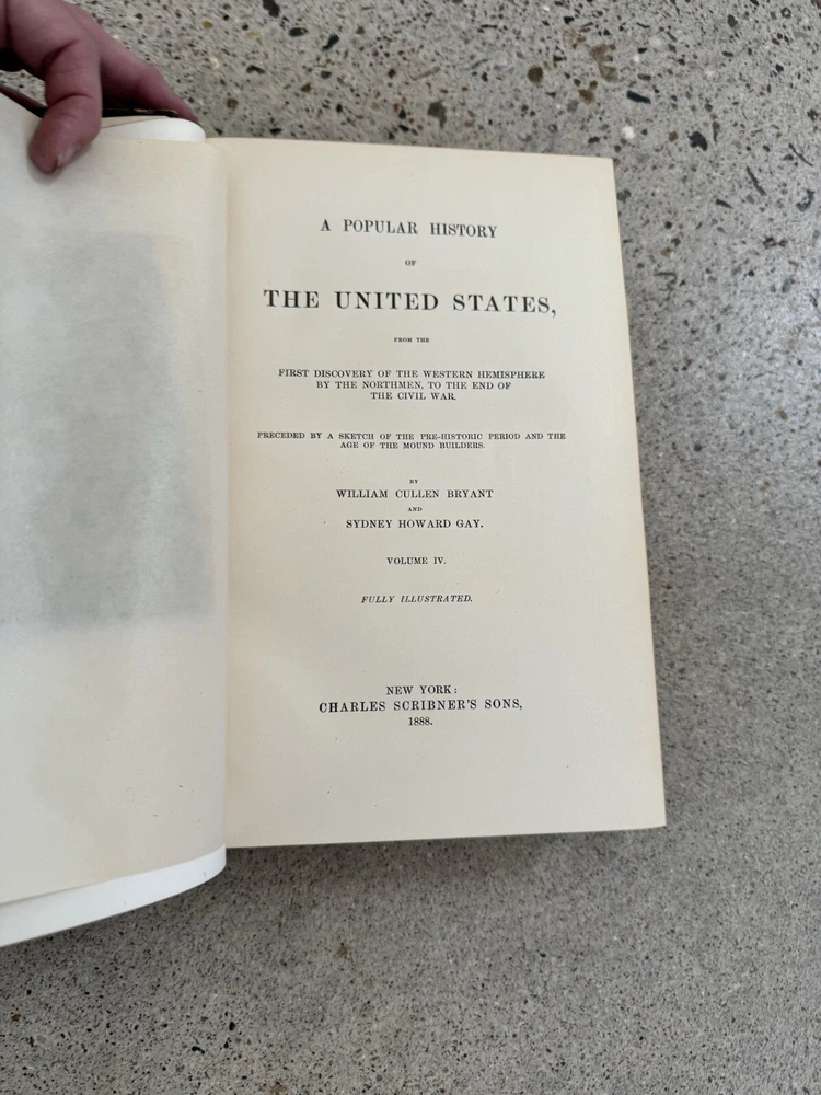 Offered here is a handsome and substantial 4-volume set of A Popular History of the United States by William Cullen Bryant and Sydney Howard Gay, published in 1888. Bound in richly decorated leather with gilt tooling and all edges gilt (3-sided gold gilding), this set presents a distinguished shelf appearance. Lavishly illustrated throughout with portraits, engravings, and historical scenes, these volumes capture the sweep of early American history in a highly visual and accessible way. Bryant, one of America’s foremost 19th-century poets, partnered with journalist Sydney Howard Gay to create a work that was both literary and scholarly, appealing to a wide audience of readers in the post-Civil War era. Condition: Well cared for set, showing expected age wear to bindings but still sound and attractive. Gilt edges remain bright, illustrations crisp, interiors clean overall. Please see images for the actual books you will receive; additional photographs are available upon request. Author: William Cullen Bryant, Sydney Howard Gay Publisher/Date: 1888 Binding: Leather with gilt decoration, all edges gilt Format: 4 Volumes, Illustrated Subject: American History, 19th Century Americana