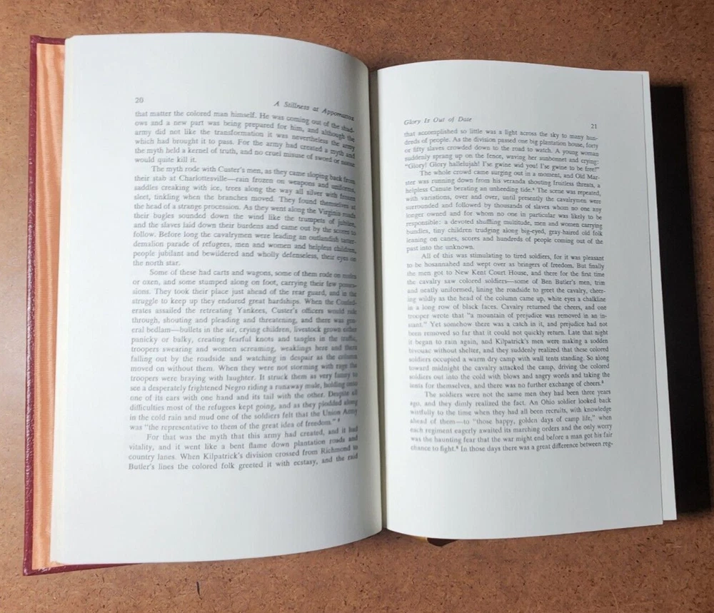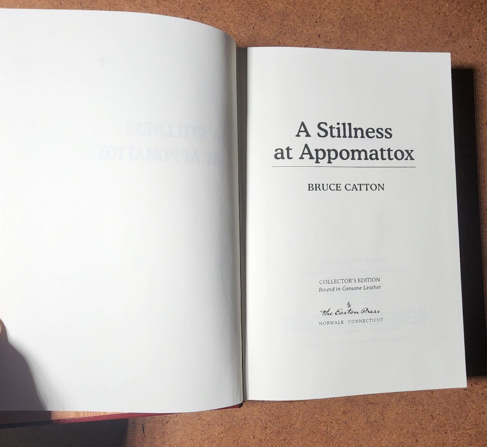 A STILLNESS AT APPOMATTOX Bruce Caton Easton Press Leather Bound Hardcover 1998 This book is in very good condition. All pages are intact. NO rips or markings. We have been selling books online since 2003. Our book stock covers a wide range of subjects such as First editions, Signed editions, Fiction, History, and many more. Our Guarantee Any purchase can be returned for any reason; we will fully refund the purchase price if notified within 30 days of receipt and the book(s) is returned in the same condition as sent. Shipping charges will also be refunded if the book has been incorrectly described. Shipping All books shipped to US destinations are sent US Post Office Media Mail. Faster shipping is available, please ask before paying. We will combine shipping on items purchased at the same time. International Buyers - Please Note: Import duties, taxes, and charges are not included in the item price or shipping cost. These charges are the buyer's responsibility. Please check with your country's customs office to determine what these additional costs will be prior to bidding or buying.